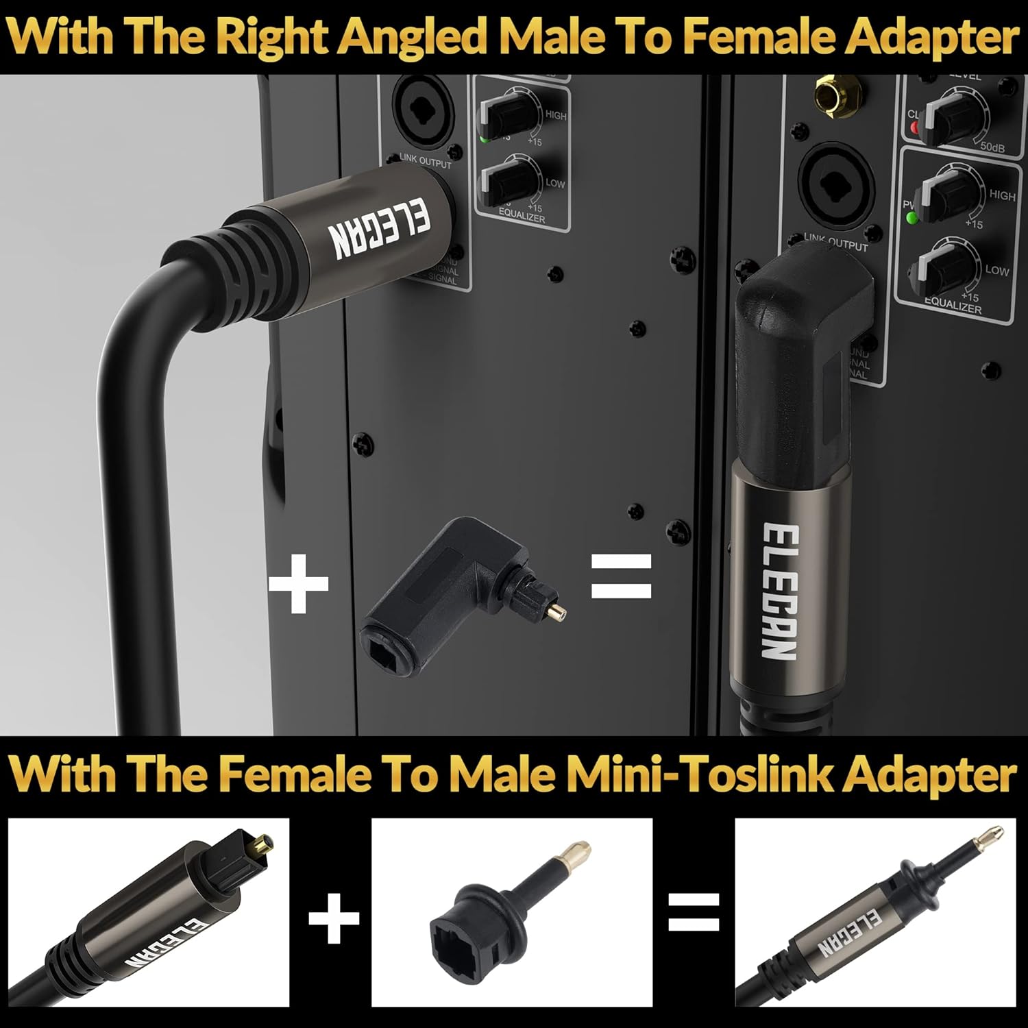 - 【Highest quality digital audio cables】: Elecan Optical Toslink cables feature a fully flexible PVC jacket with precision manufacturing to provide the highest quality, longest lasting optical cables available. Aluminum case and gold-plated connector make sure this optical audio cable remains the best performance even after thousands times of using, immune to RFI or EMI signal interference.