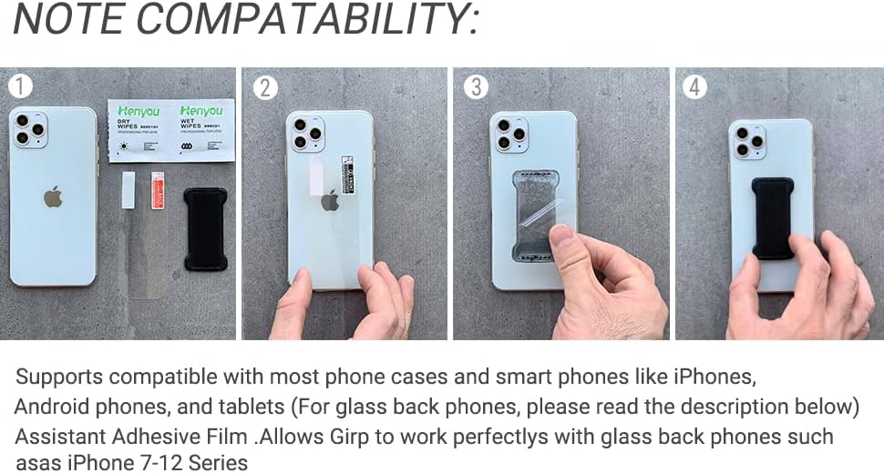 - Slim pocket-friendly design | Soft comfortable elastic grip | Safe no-residue removable reusable adhesive, See directions below on how to setup the WUOJI Phone grip,Assistant adhesive film.allows Grips to work perfectlys with glass back phones.
