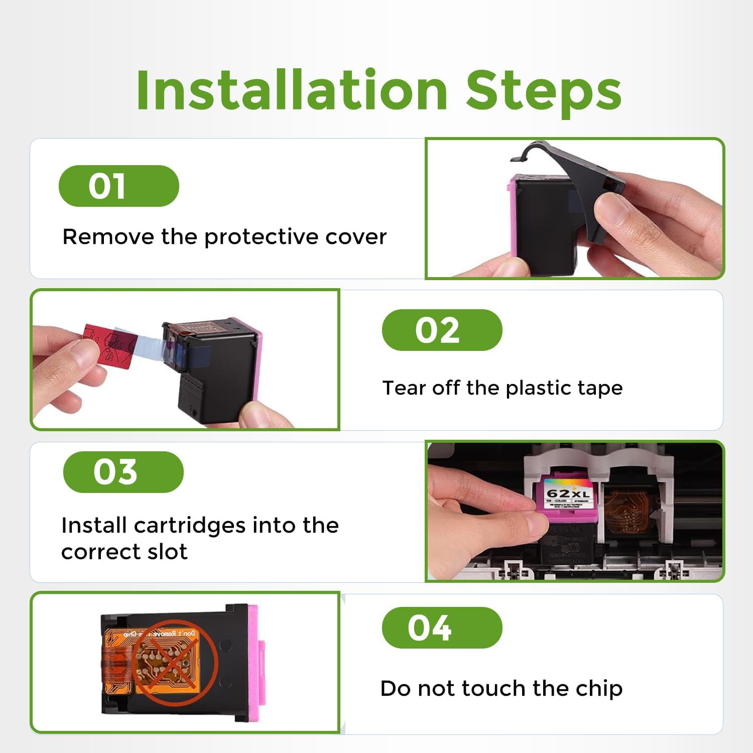 - With Upgraded Chip: Replacement for 62XL ink cartridge combo pack equipped with the latest upgraded chips to ensure high compatibility