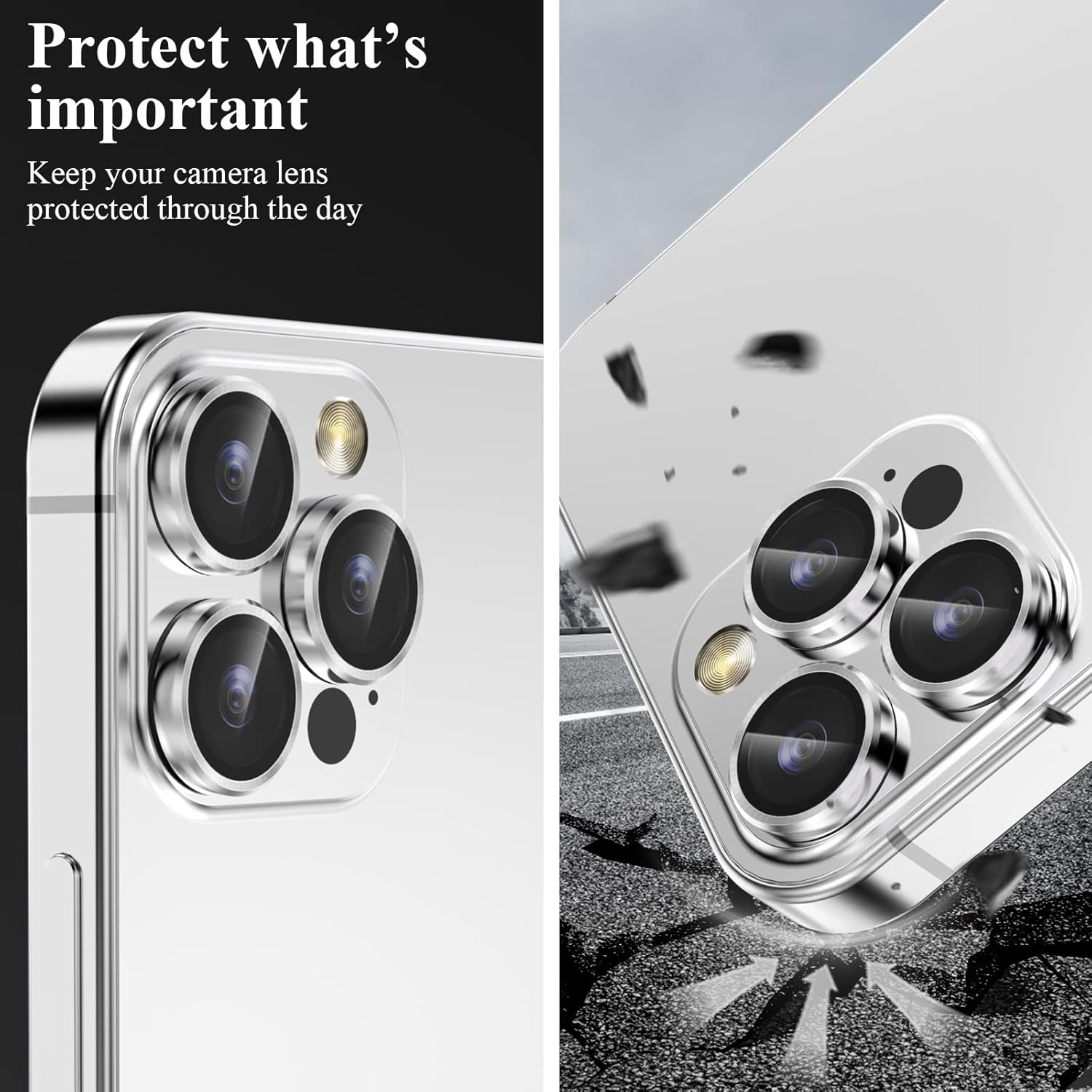 - Daily Protection: The individual metal ring and 9H tempered glass lens cover protect your camera lens from damage and scratches. The surface of the iPhone 14 Pro Max lens protector is oiled to protect it from fingerprints, sweat and grease residues.