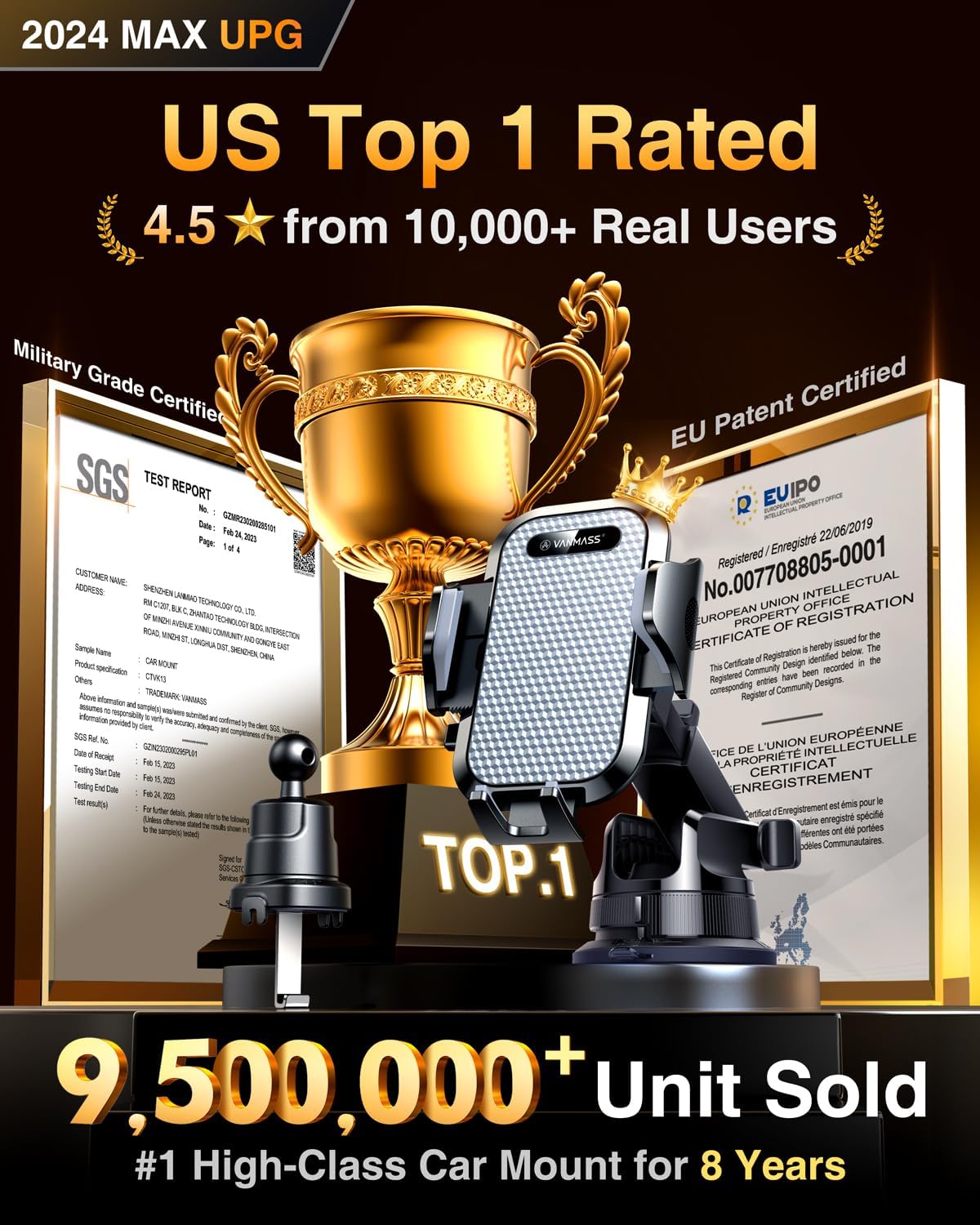 - ăTrue Military-Grade Certified, 2024 Upgraded Ultimate Car MountăVANMASS, the leader in high-end car phone holder. Over the past 8 years, We have listened to the voices of millions of users, rigorously tested to MILITARY GRADE standards (stability, compatibility, flexibility, security, durability). Finally, we overcome all weaknesses to design the Ultimate Model that we are most satisfied with. This item obtained international military-grade shockproof certification No. GZMR220601855501