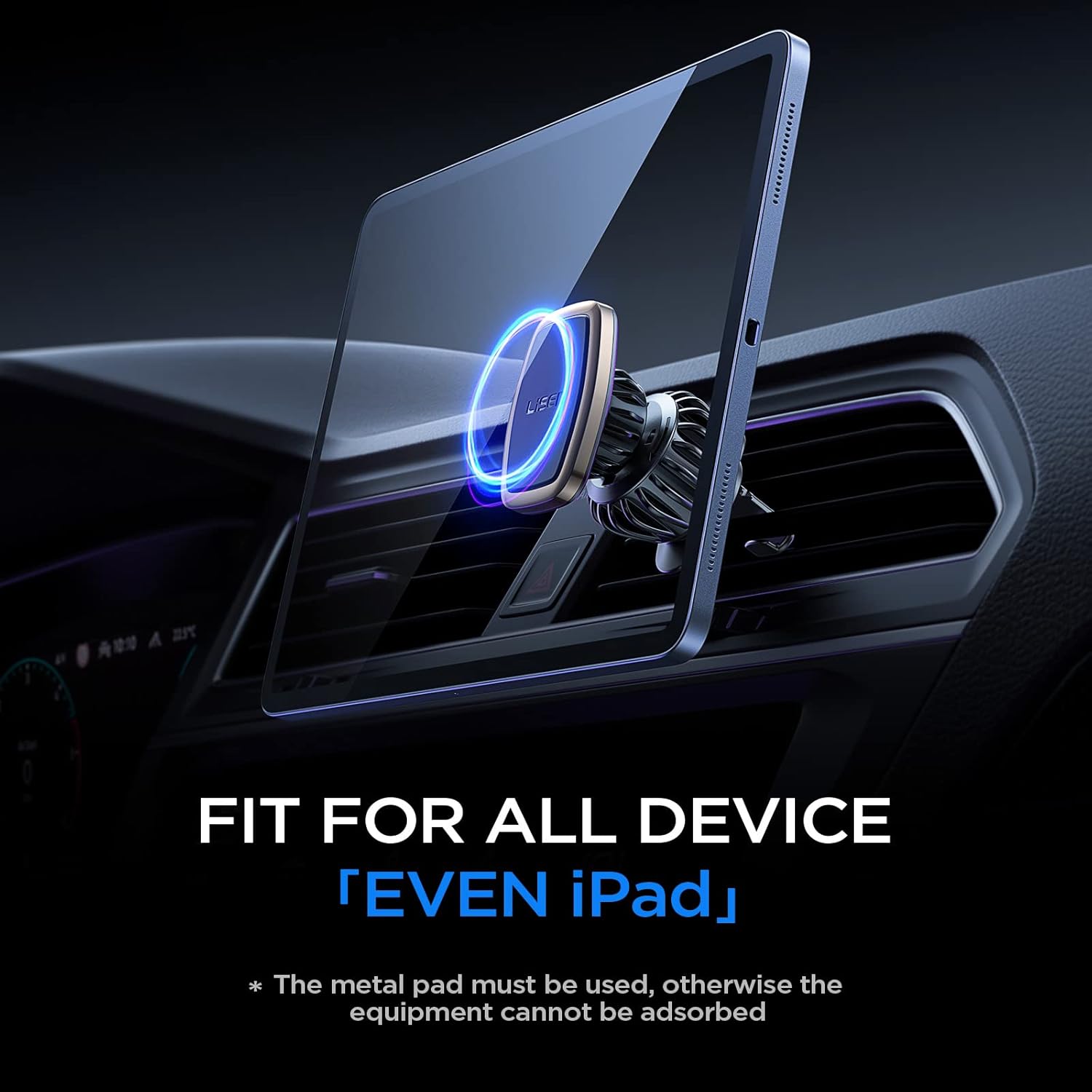 - LOCK YOUR PHONE FIRMLY: LISEN Magnetic Phone Car Mount with 6 built-in strong magnets, the maximum bearing up to weight of 4 cellphones. Powerful suction keep your cellphone stay stably even when drive on a bumpy road. PLEASE NOTE:1. It is recommend that use the “square pad” on the back of your phone/case. It is more stable than the round. 2. ANY DEVICE NEEDS TO USE THE METAL PALTE EVEN iPhone 12 and iPhone13.