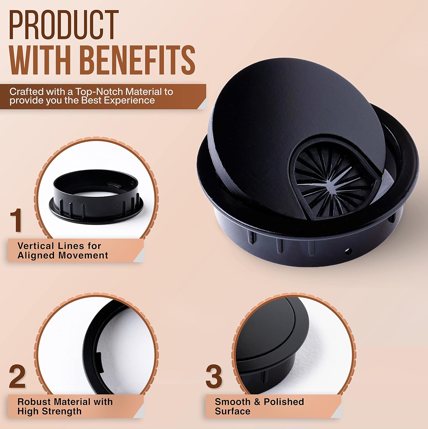 - Clean & Spacious Work Environment: Zinc Alloy Metallic Cable grommet is used for cords or wires management on your working desk to provide a clean and organized work environment