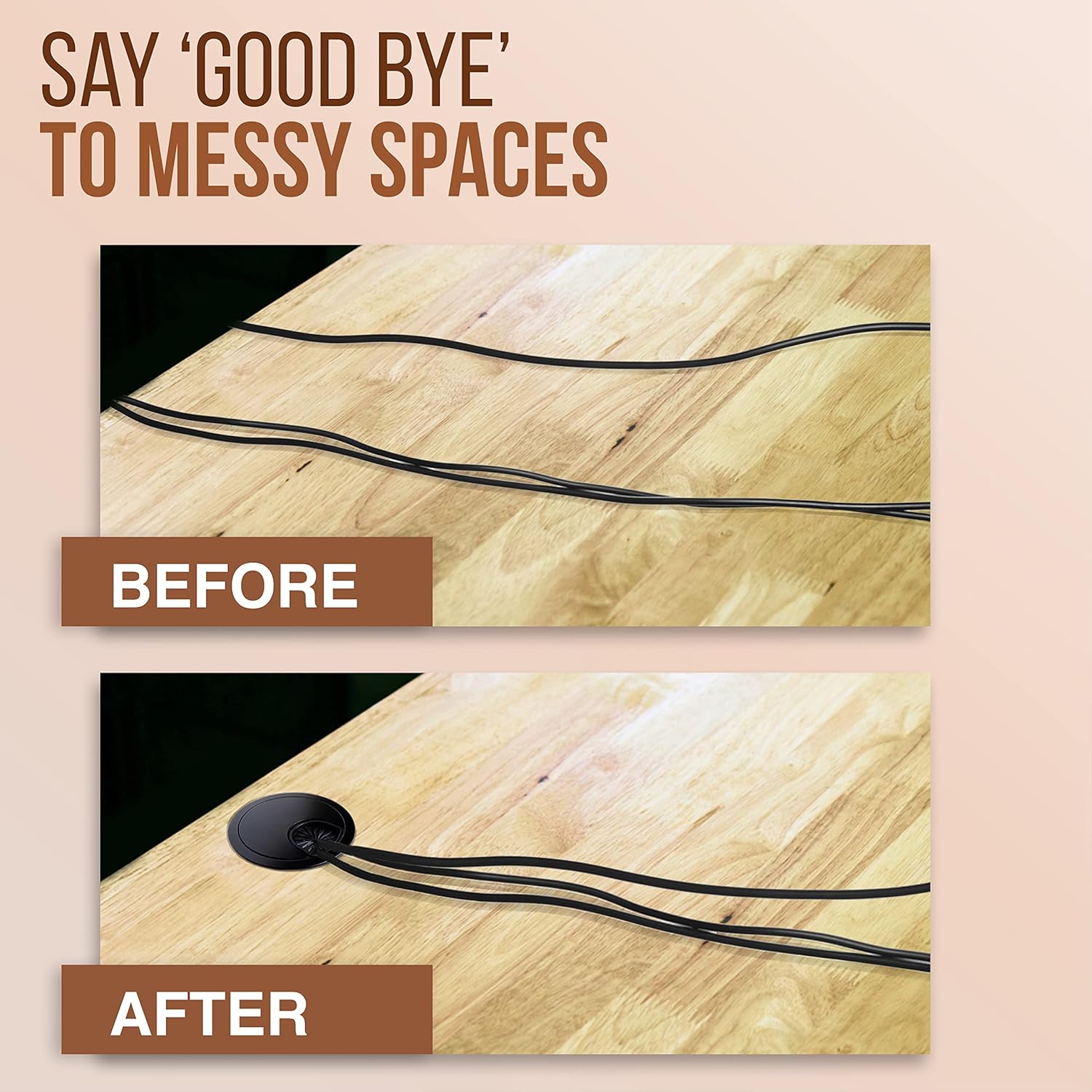 - Removeable Lid: Metal Desk cord hole cover has a detachable lid that gives the ability to easily adjust and organize wires and cables/plugs through desk hole