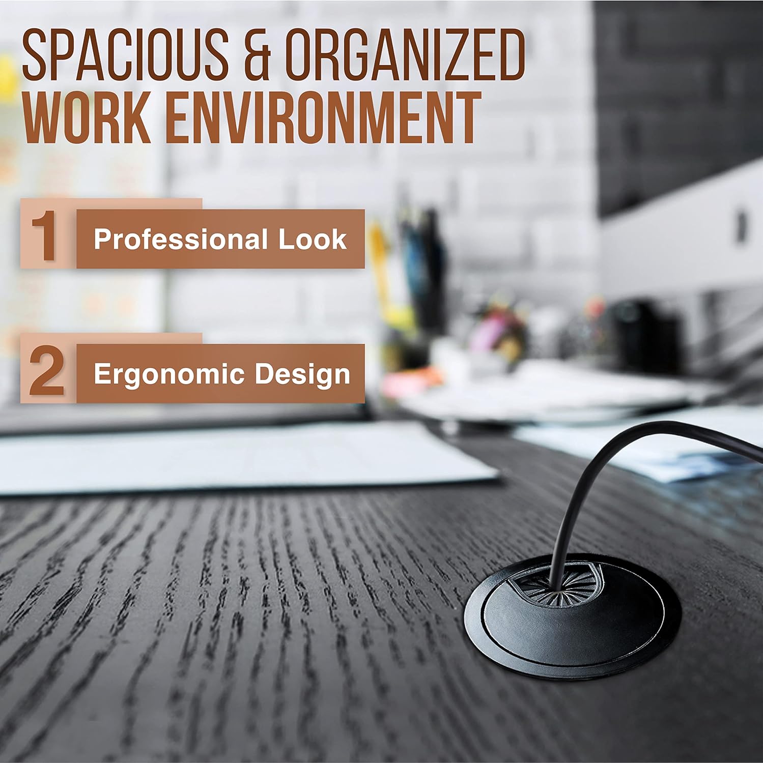 - Maintain Safety: Metal Desk hole cover serves as a cable organizer and protect cords from sharp edges by giving them a smooth surface and direct them appropriately through their openings to ensure a safe work area