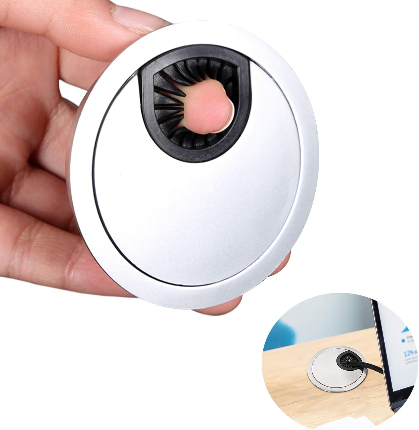 Desk Grommet for Wire Organizer,PC Computer Desk Plastic Grommet Cord, Tidy Cable Hole Cover Organizers,2 Pack (53mm, Silver)