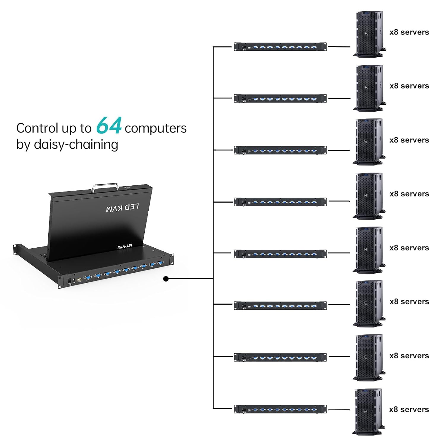 - Widely Compatible with Windows/Dos, Linux, Mac OS8.6/9/10. 8 pack KVM cables with various length are included, but you may order 10ft/16ft for your need ( Asin: B08ZJ41YD4/B09NPMXBDW).