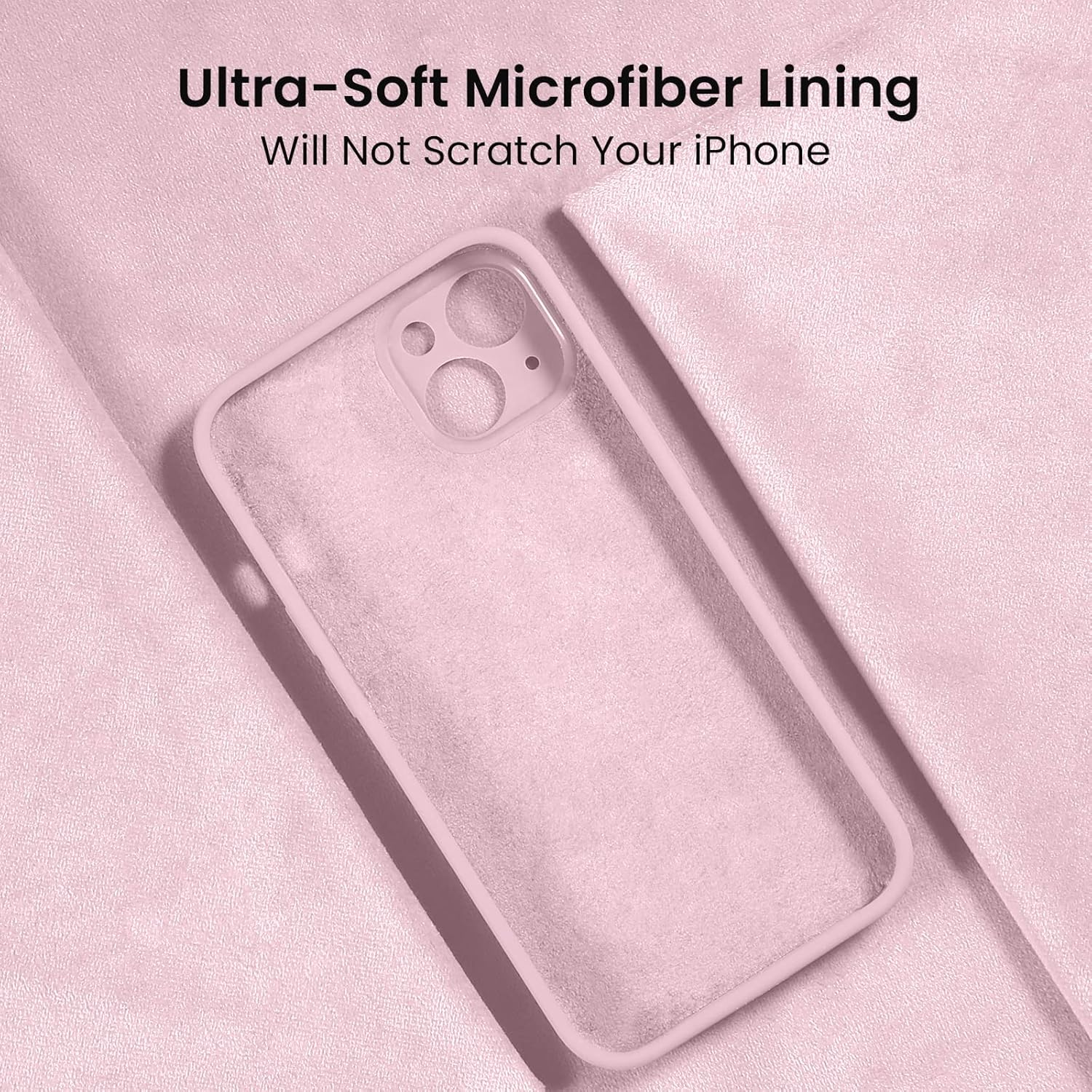 FireNova Designed for iPhone 14 Case, Silicone Upgraded [Camera Protection] Phone Case with [2 Screen Protectors], Soft Anti-Scratch Microfiber Lining Inside, 6.1 inch, Chalk Pink