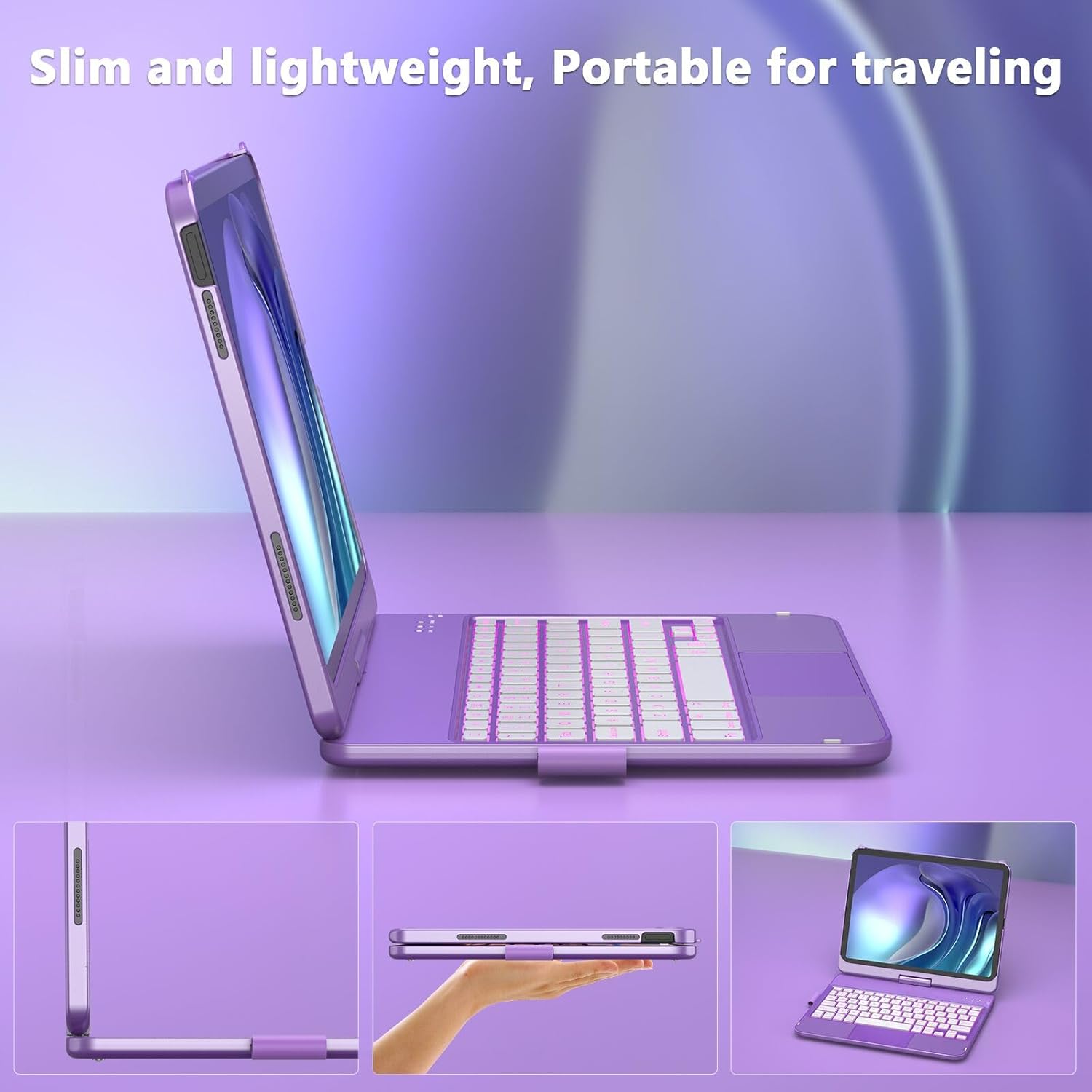 for iPad A16 11th Generation/10th Generation Case with Keyboard,Touch Keyboard for iPad 11" /10th Gen 10.9 inch 2022-10 Color Backlight, 360° Rotatable Protective Cover (Light Purple)