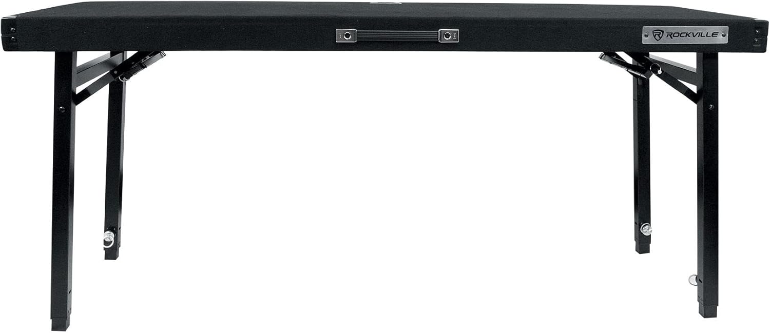 Rockville RTBL4 Adjustable Height DJ Table Folding Legs 20x60 Inch, Portable, Non-Slip Surface, Carry Bag Included, for Mobile DJs and Event Performers