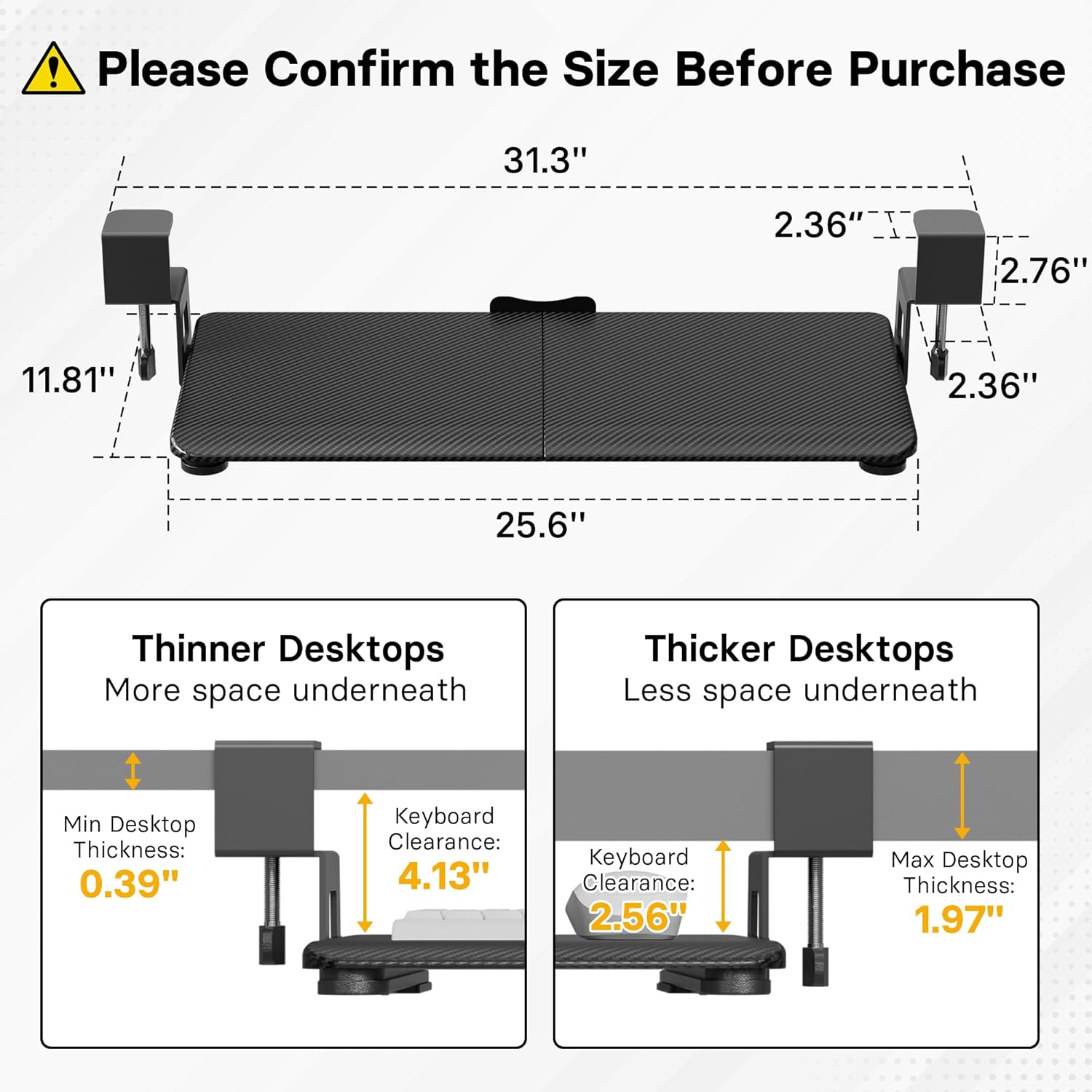 - ✅ MEASURE YOUR DESK BEFORE ORDERING – The tray requires at least 31.3" of width and 11.4" of depth underneath your desk to slide in and out smoothly. Confirm these dimensions to avoid fitment issues