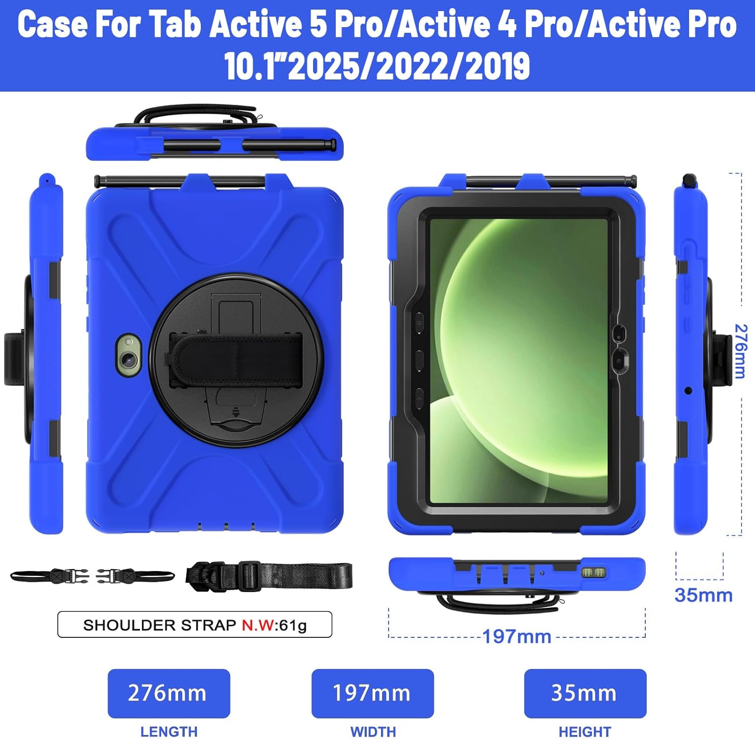 Rantice Case for Samsung Galaxy Tab Active5 PRO / Active4PRO / Active PRO 10.1, Shockproof Drop Protection Case with 360 Stand, Hand Strap & Shoulder Strap for SM-X350/X356B/T540/T547/T630/T638(Blue)