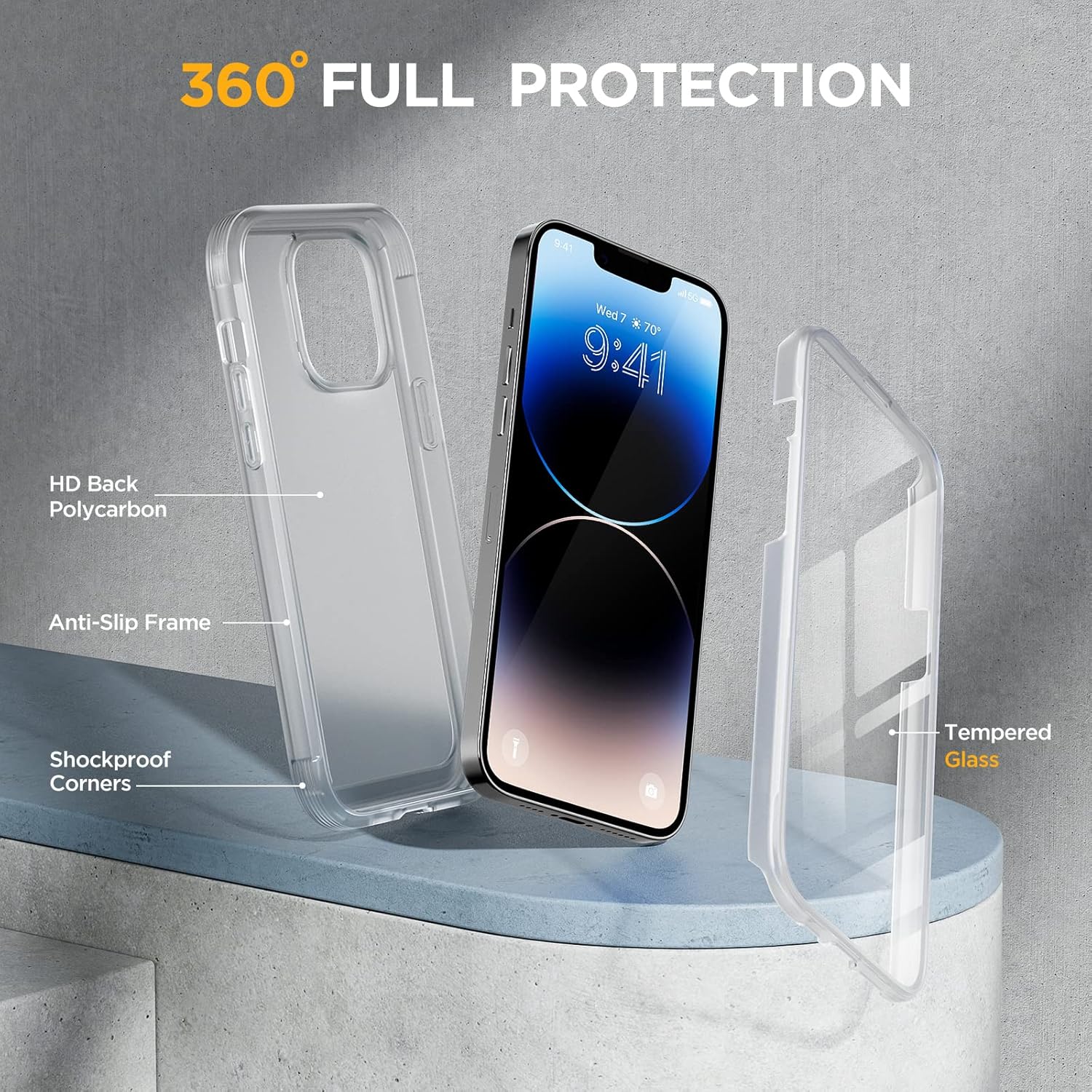 - [360ยฐ Full-Body Rugged Protection] Full-body protective case for iPhone 14 pro max. Tri-layer structure absorbs and deflects impact that blocks dirt and dust. Elevated lips around the camera and the screen are added against untoward scratches.