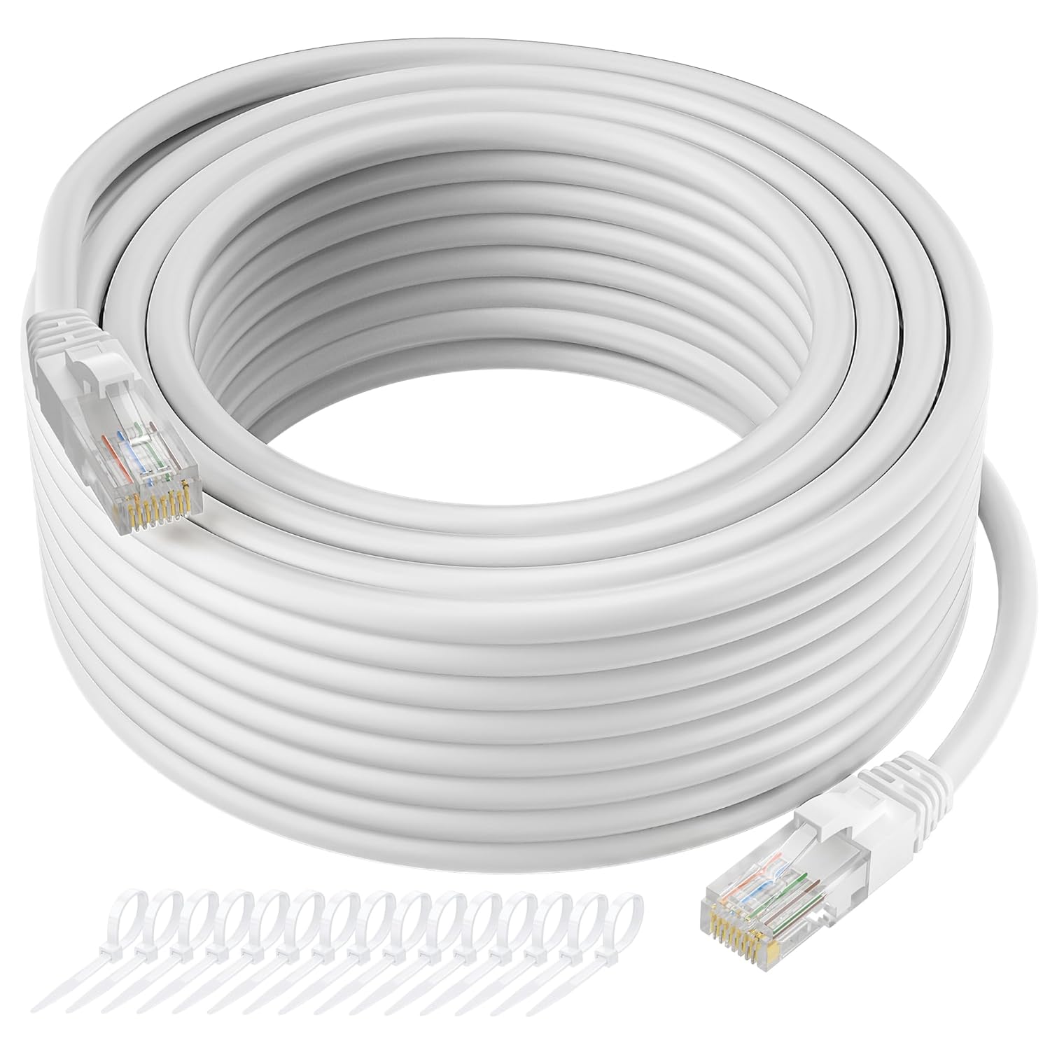 - 【Extremely Cost-effective】: Our Cat5e cables use the price of Cat5, but have higher bandwidth and faster speed. In addition, we offer you 15 free white cable ties, allowing you to easily manage your network cables or other cables.