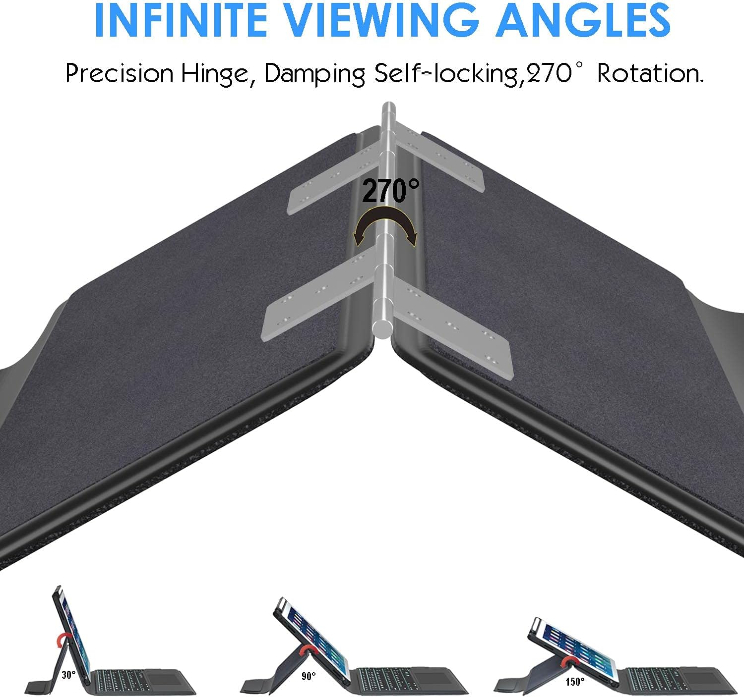 - 7 USE MODES: Unique design of iPad 10.9 keyboard case (20,000 cycle stress tested) allows 270° rotation. You can comfortably use iPad for typing notes, reading, playing games and watching videos. 270° rotation provides multiple viewing angles to meet different visual needs and allows to change your iPad to a small laptop in seconds.