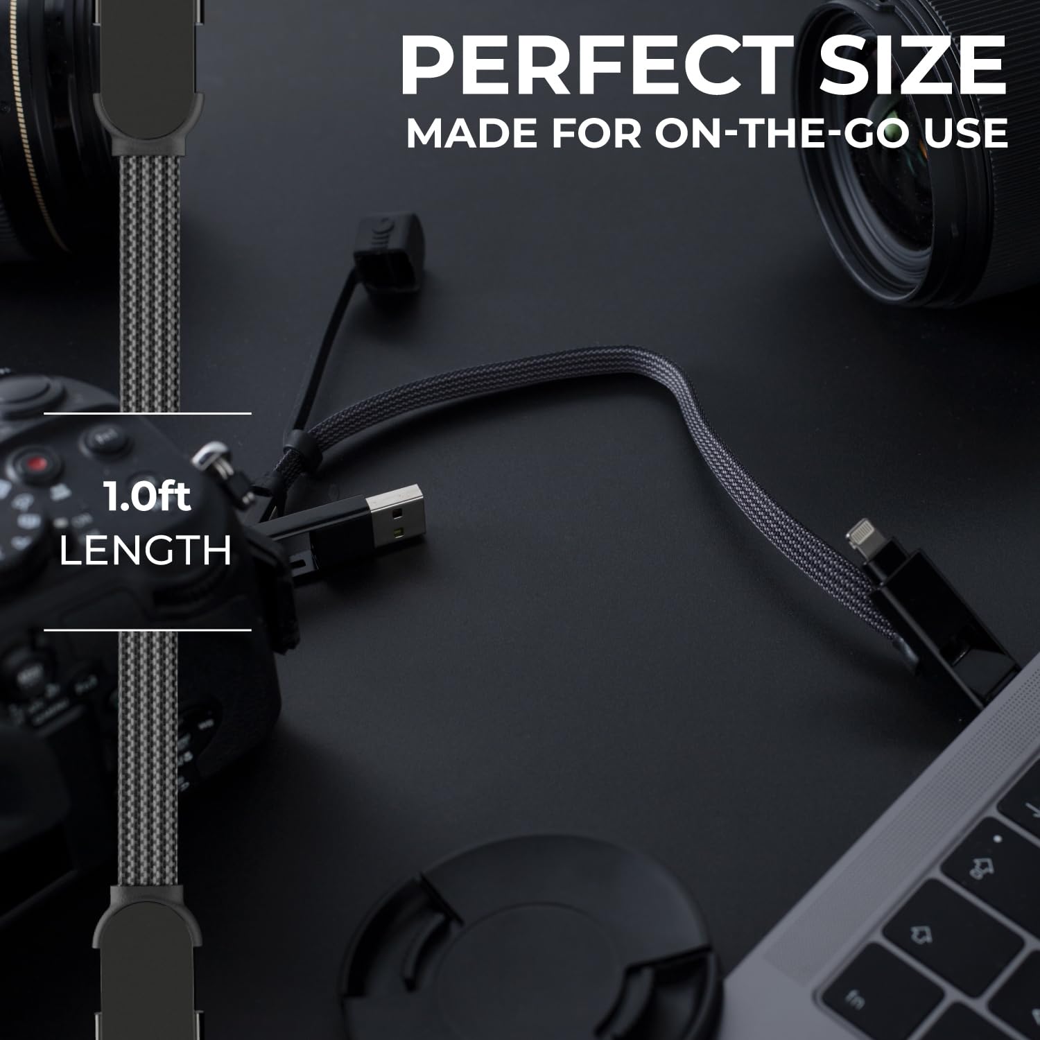 Rolling Square inCharge XL 6-in-1 Multi Charging Cable, Portable USB and USB-C Cable with 100W Ultra-Fast Charging Power, 1 Ft/0.3m, Urban Black