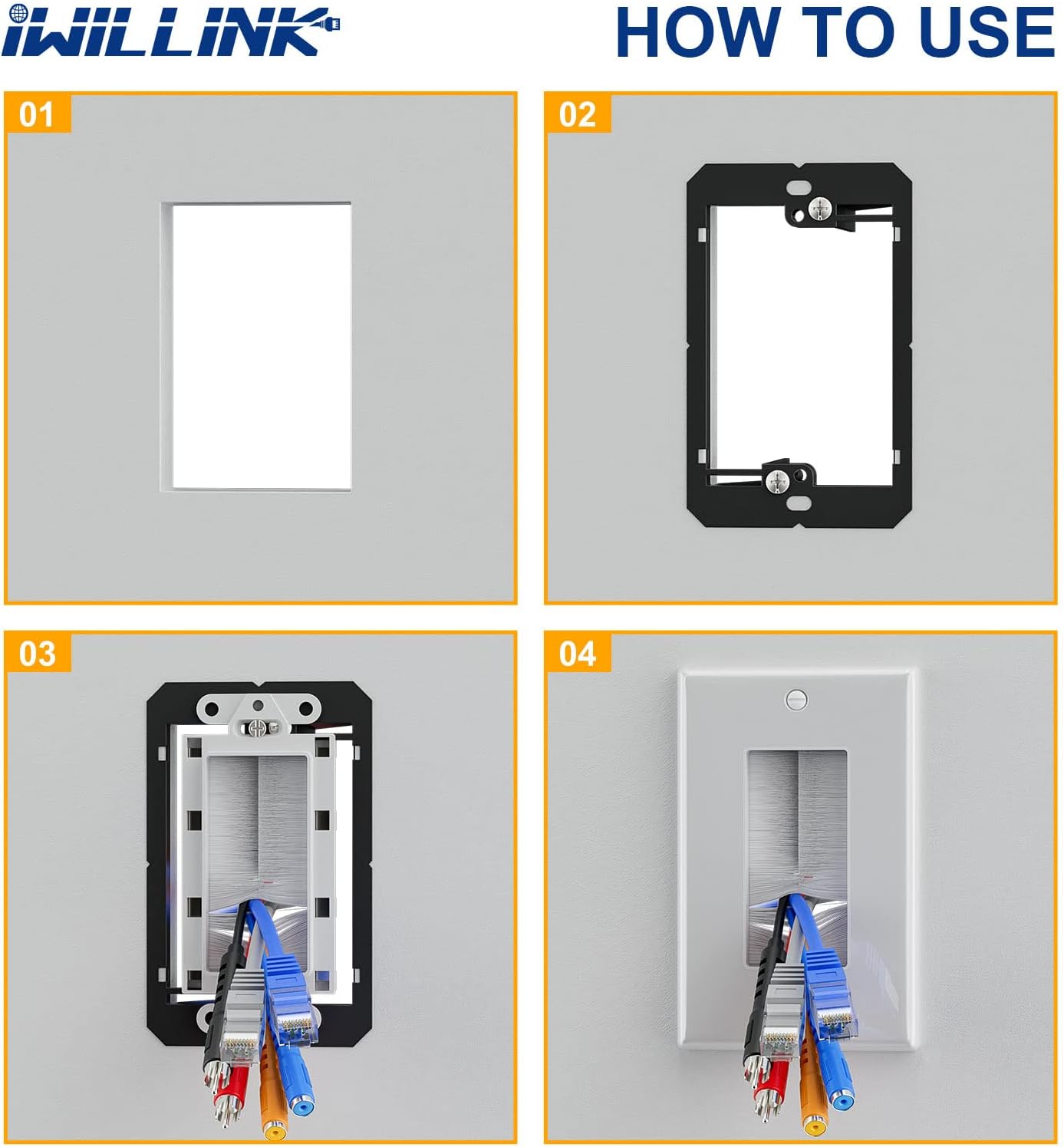 - Universal Design: The brush wall plate is universal in size and easy to use. It allows you to run cables neatly and out of sight, giving you a professional look at a fraction of the cost