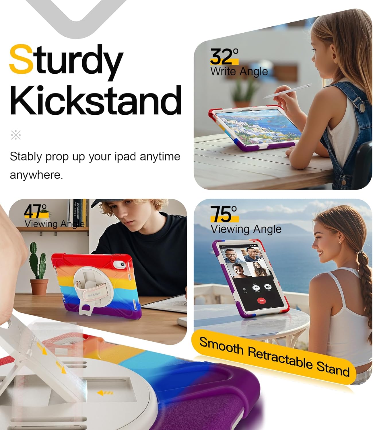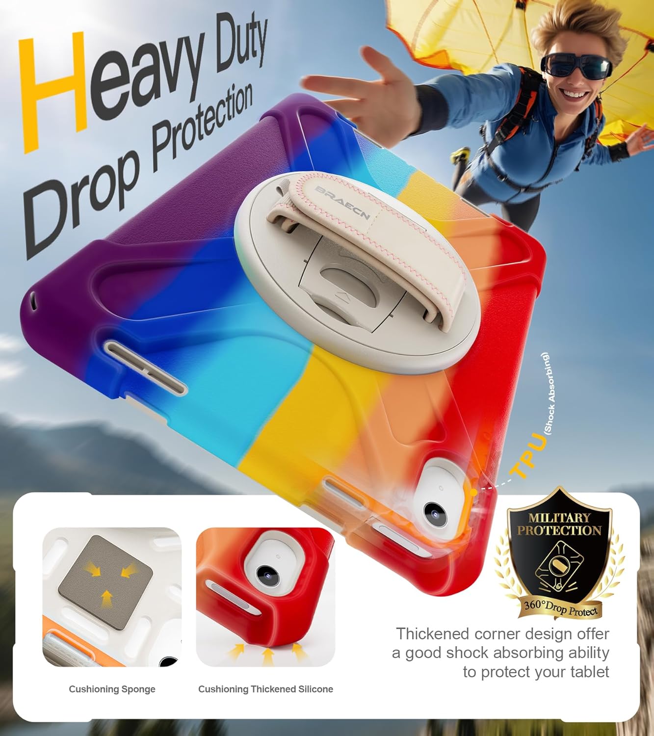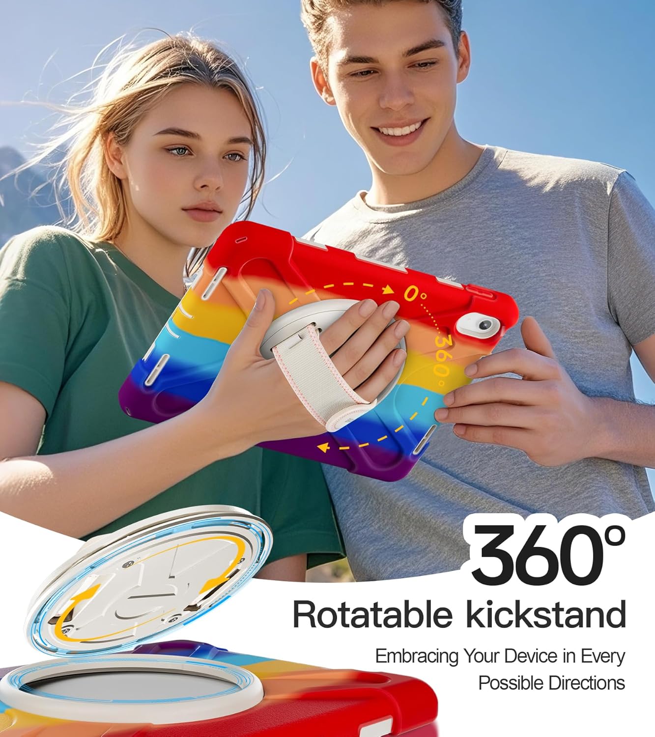 - [360°Rotating Handle/Stand & Shoulder Strap]:This ipad 11/10.9 inch case have a 360° rotation system that includes a kickstand and a hand strap, by rotating it, you can hold your ipad at any angle, by utilizing the swivel and the stand, you can support your ipad at multiple angles.The adjustable shoulder strap allows you to carry or hang your iPad at any time, so that you can provide more convenience in outdoor sports, traveling.