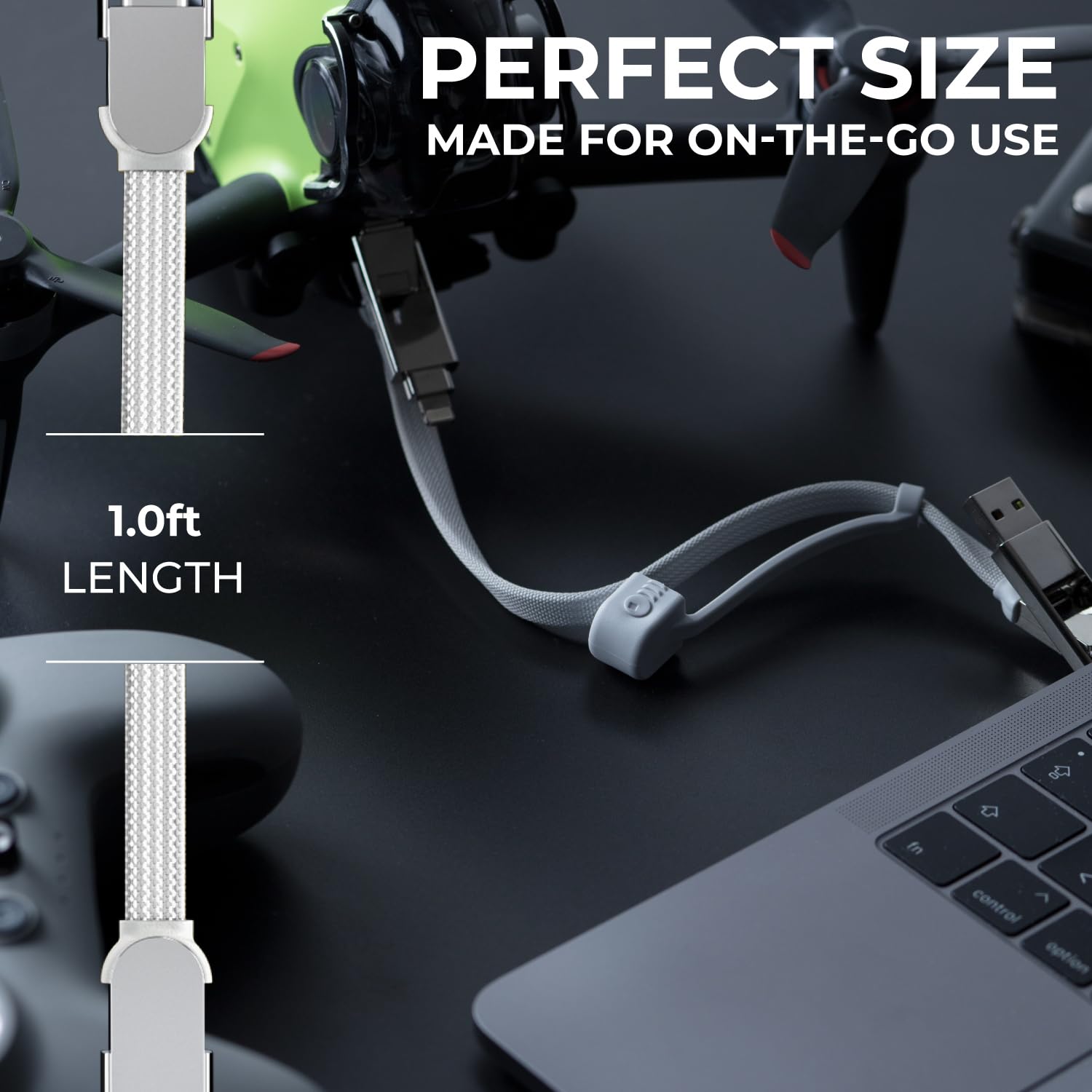Rolling Square inCharge XL 30cm - USB C Charger Cable, Lightning for Smartphone, Universal 6 in 1, USB Plug, Glacier White, 100W