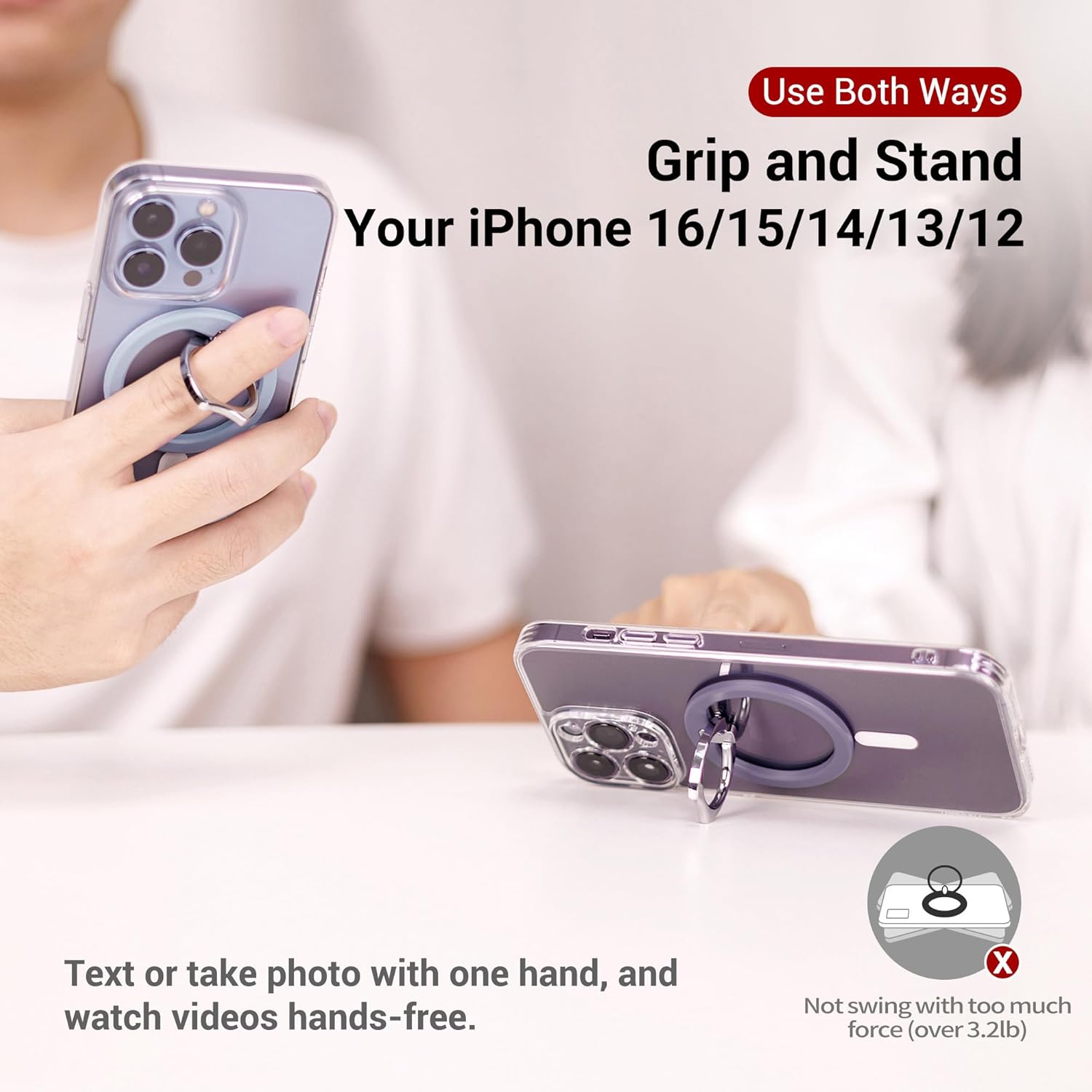 - ăSuper Strong Magnetism Poweră: with total 17pcs N52 magnets inside, it provides a strongest magnetic grip up to 3.2 lb, which ensures it sticks tightly to your iPhone 16/15/14/13/12 with a MagSafe case and keeps you phone secure in hands