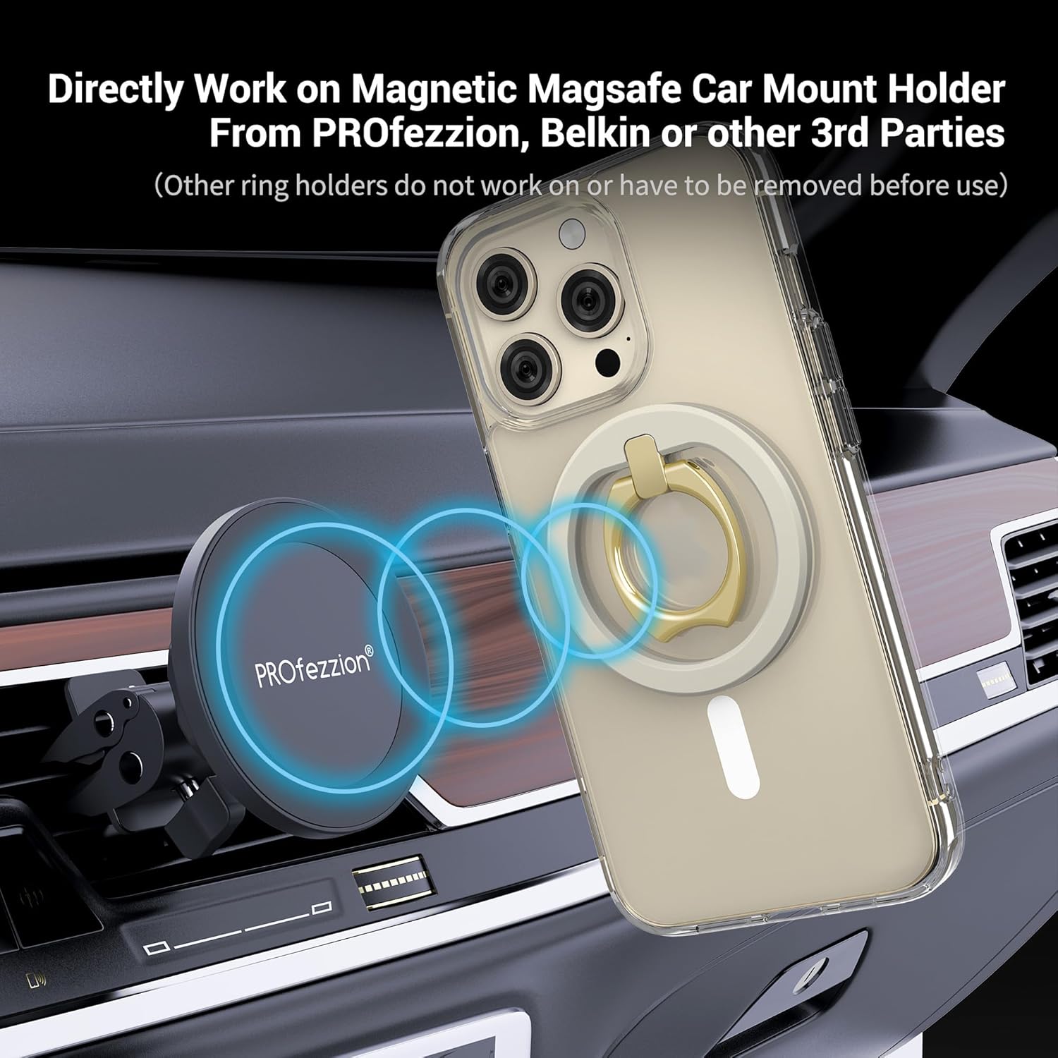 - ăDirectly Work with MagSafe Car Mountă: Directly works with MagSafe Car Mount from PROfezzion (Sold Separately), Belkin or other 3rd parties (Other magnetic ring holders do not have this great feature)