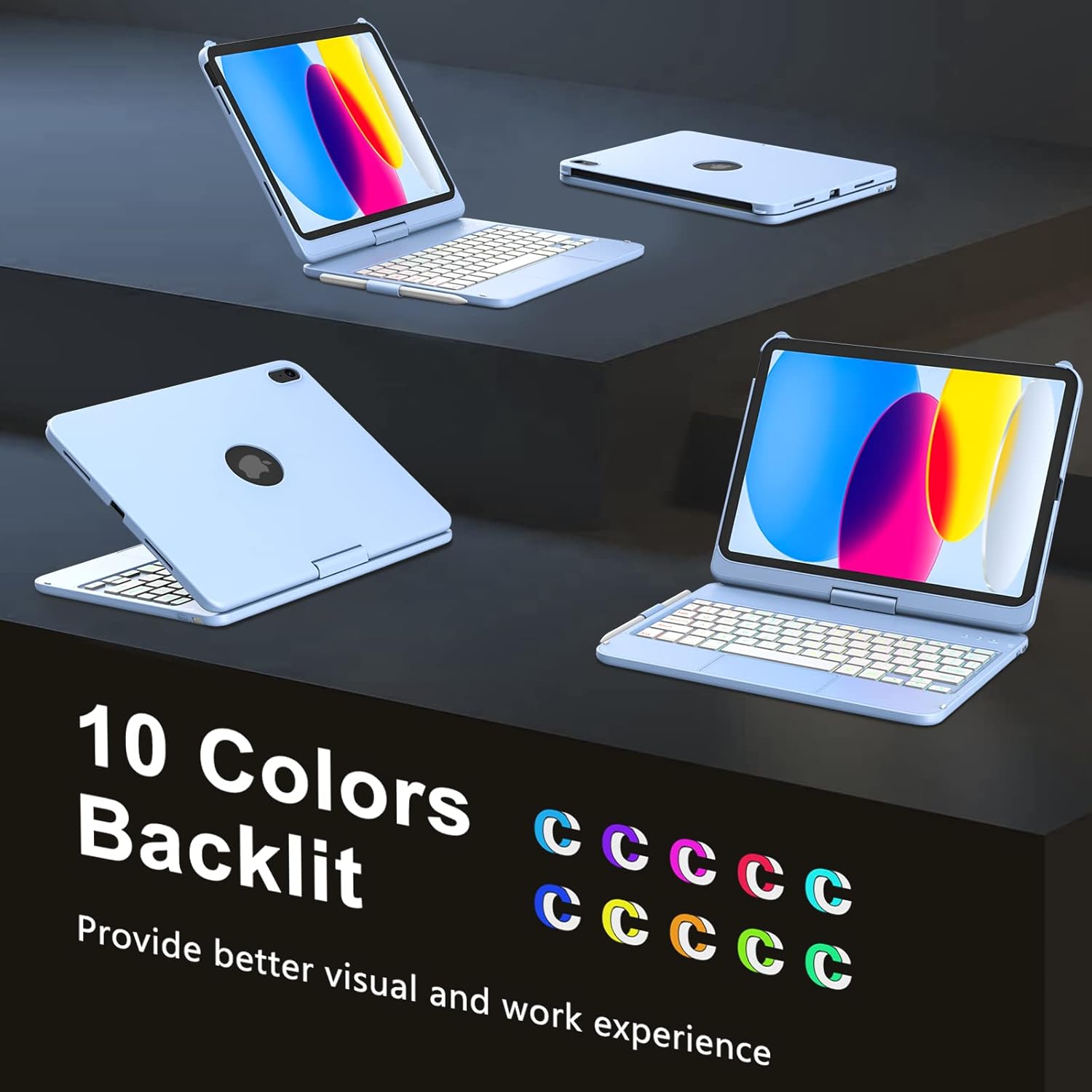 for iPad A16 11th Generation/10th Generation Case with Keyboard,Touch Keyboard for iPad 11" /10th Gen 10.9 inch 2022-10 Color Backlight, 360° Rotatable Protective Cover (Ocean Blue)