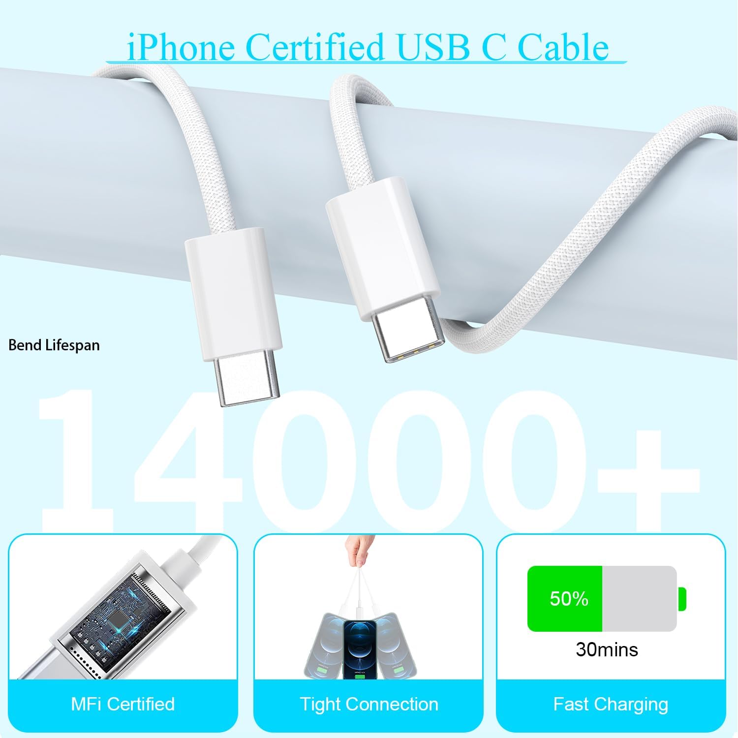 10FT iPhone 16e Charger Fast Charging,2Pack 20W USB C Apple 16e 15 Pro Charger Block & 10Foot Long USBC Woven Cable Cord for iPhone 16/16e/16 Pro Max/16 Pro/16 Plus/15/15 Pro Max/15 Plus/iPad Pro 12.9