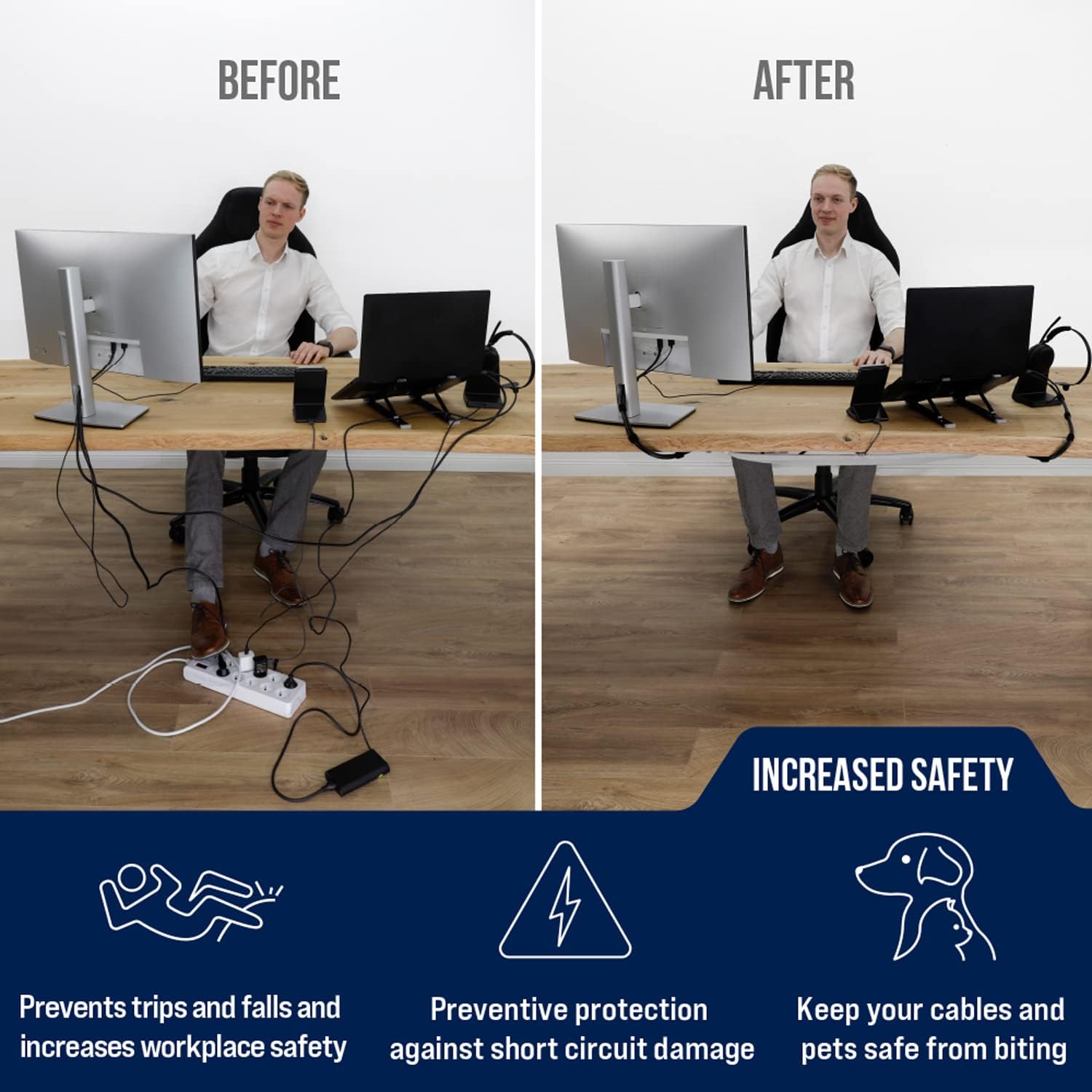 - Hide every cable! A flexible cable net under desk offers enough space to store all power supplies and plugs. Position the under desk cable management tray to sort all cables clips included and keep your cable tidy desk neat.