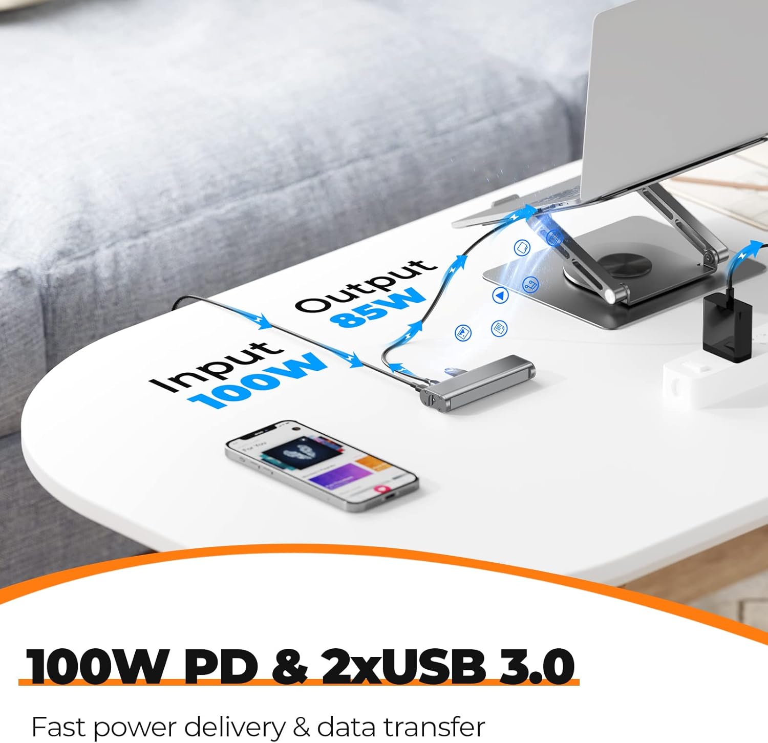 Tobenone Laptop Docking Station Stand for MacBook Pro/Air/Dell/HP/Surface/Lenovo, Mac Docking Station with 4K HDMI, USB 3.0, RJ45, PD 3.0, USB C Laptop Stand Hub for Desk with 360 Rotating Base Grey