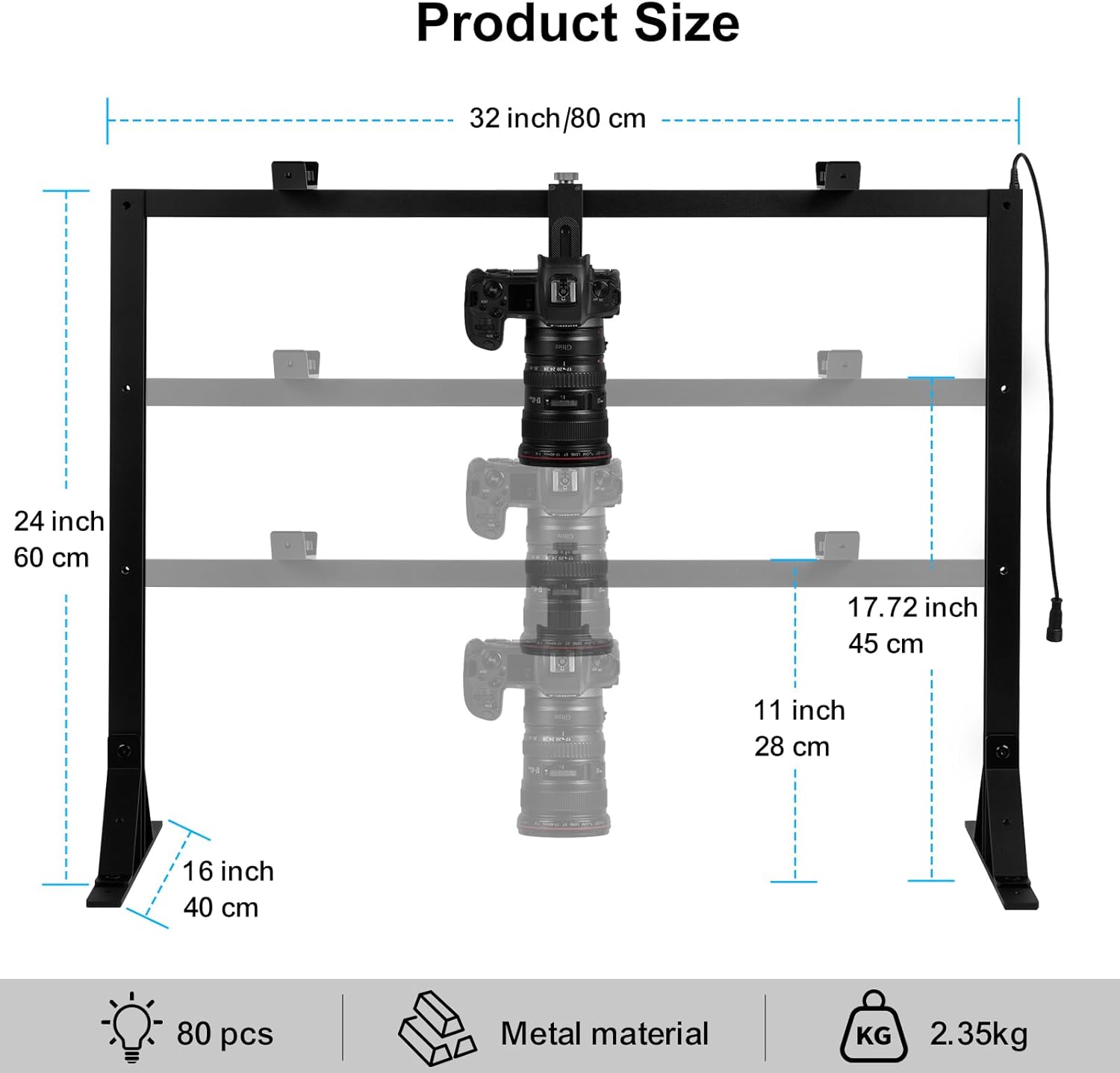 Overhead Camera Desk Mount Rig with 5600K Continuous LED Lighting - Top-Down Shooting Stand for Product Photography, Live Streaming - Universal Fit for DSLR, Mirrorless Cameras & Smartphones