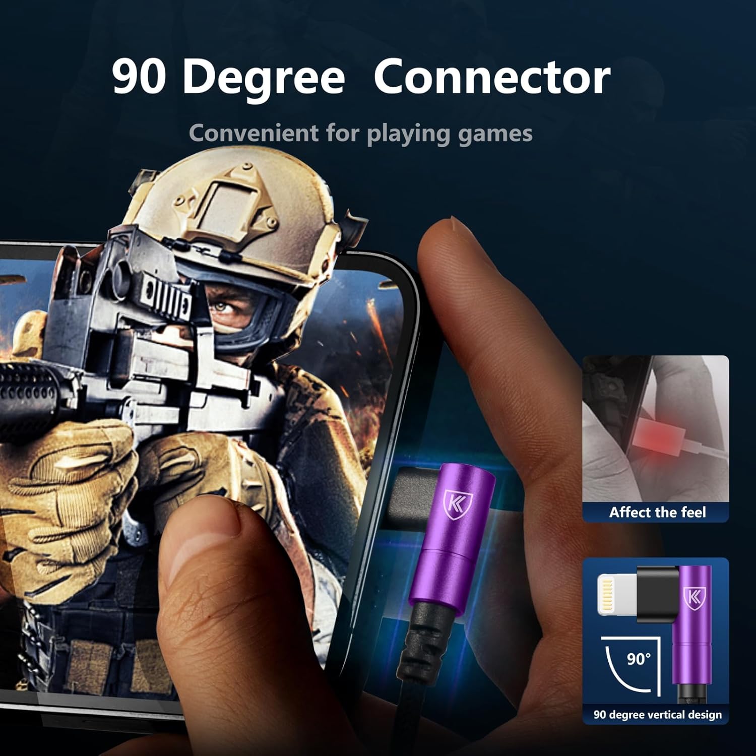 - 90 Degree iPhone Charger Cable: The 90 degree lightning cable 6ft comes with L shapes connections (Lightning end), which can fit the device sideways. 90 degree extra long 6 FT iPhone charger cord is more convenient for playing games, watching video when you while charging.