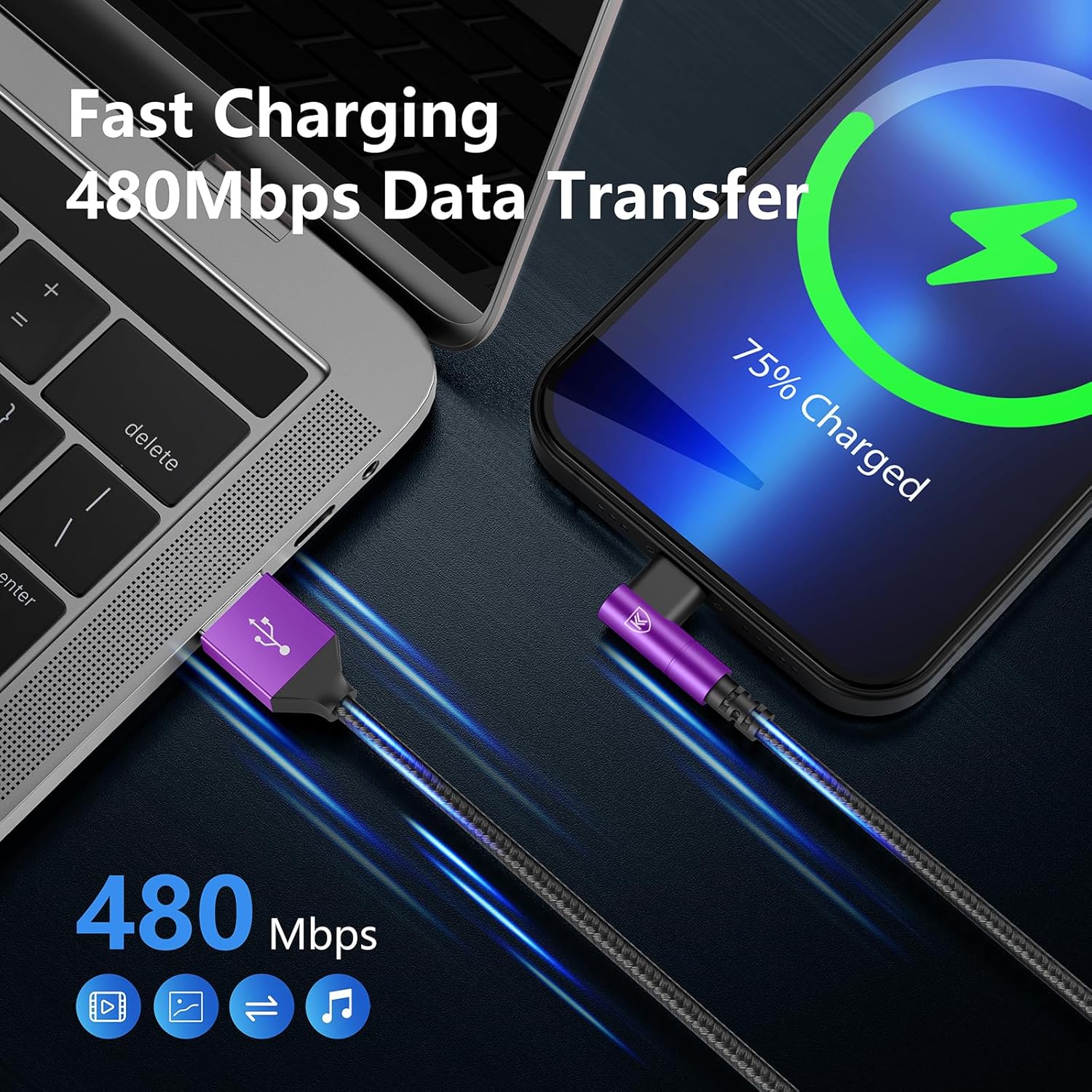 - Fast Charging and Data Transfer: iPhone USB cable supports safe fast charging (2.4A) and data transfer (480Mbps). It can not only charge cell phone and iPad as the original charger, but can sync photos, music, videos, files.