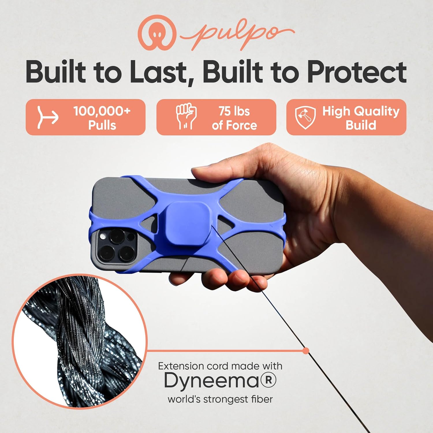 - RETRACTABLE DYNEEMA CORD FOR EASY ACCESS: Equipped with a 29.5" Dyneema cord, the world's strongest fiber, our retractable phone leash allows quick access to your phone without compromising security. The durable, lightweight design ensures that you can use your phone freely without worrying about breakage. Plus, the strap is designed to avoid interference with most cameras and can be positioned out of the way for phones with corner cameras, so you can capture photos without any obstruction.