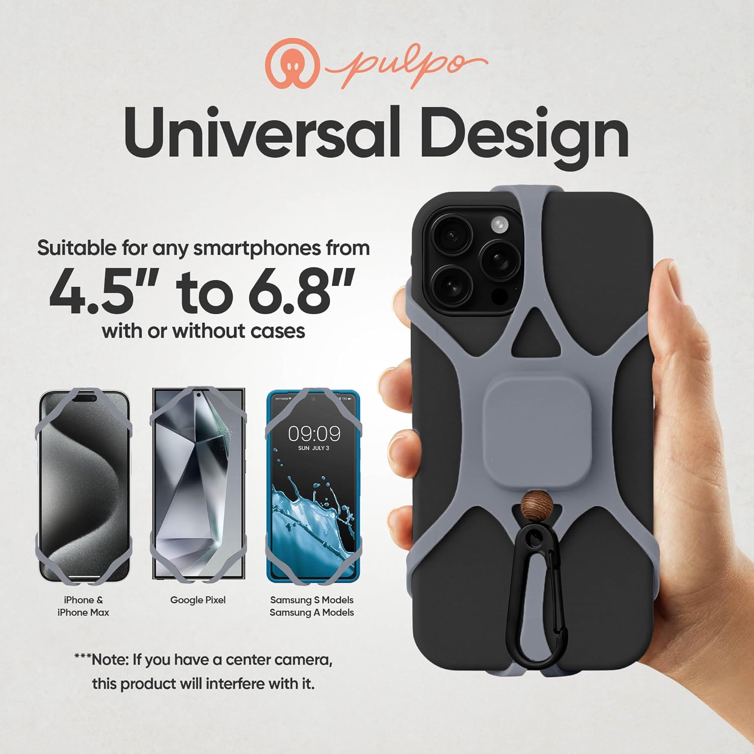 - WIDE COMPATIBILITY FOR ALL SMARTPHONES: Our cell phone leash fits any smartphone from 4.5 up to 6.8", whether it's in a case or without a case, providing phone theft protection during outdoor activities or daily use. The Pulpo travel safety phone leash fits various phone models, so you won't worry about dropping or losing your phone again. IMPORTANT NOTE: This isn't a lanyard; the retractable phone case system isn’t strong enough to support your phone alone, so it still needs to be pocketed.