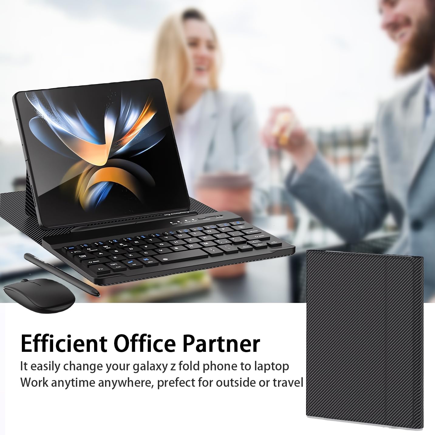 - 4 IN 1 KEYBOARD SET : With keyboard and mouse set, it easily change Z Fold 7 6 5 4 or tablets into a mini laptop . Wireless keyboard and mouse set is a wonderful office accessories for galaxy z fold 7 6 5 4 3 foldable phones