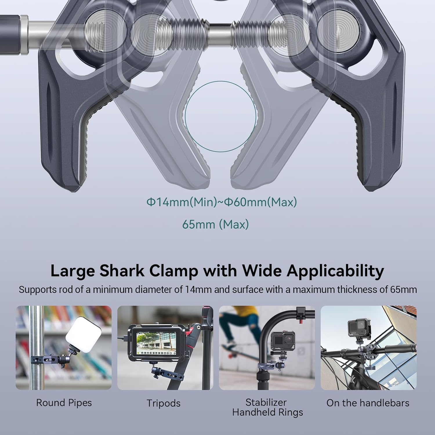 - Durable and Anti-scratch Design: The crab-shaped clamp is made of aluminum alloy and precise CNC process anodized aluminum materials to increase sturdiness and durability. Built-in anti-slip cushions protect your camera accessories and increase clamping stability.
