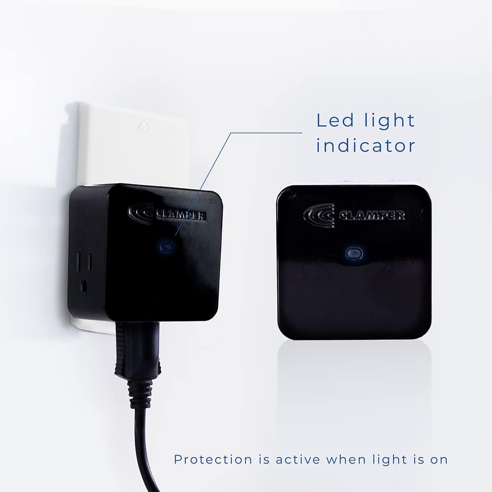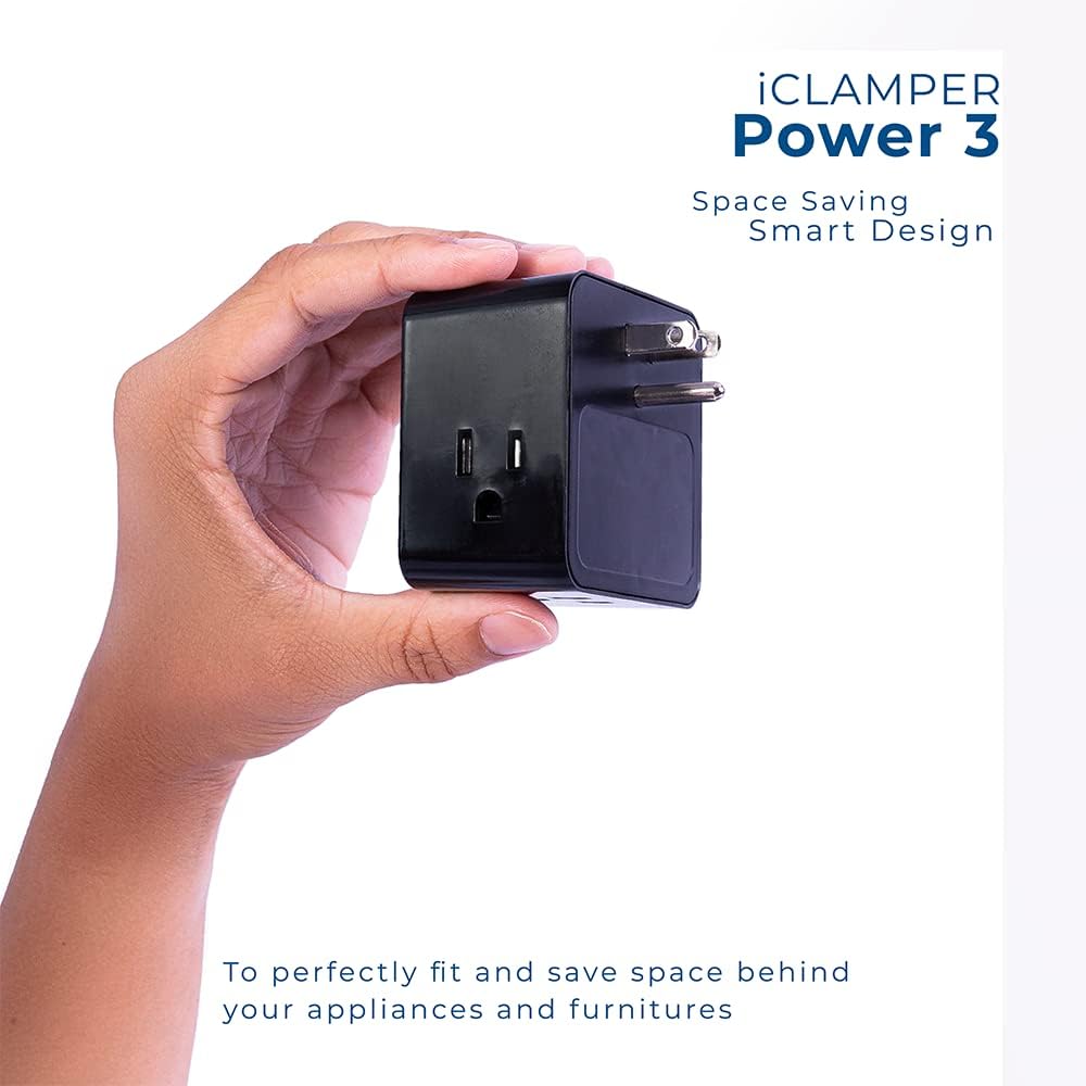 Clamper 3-Outlet Surge Protector 1800 Joules, 1875W, for TV, PC, Xbox, PS5, Refrigerators and Other Appliances (Compact Wall Surge Protector), iCLAMPER Power 3, 1-Pack Black