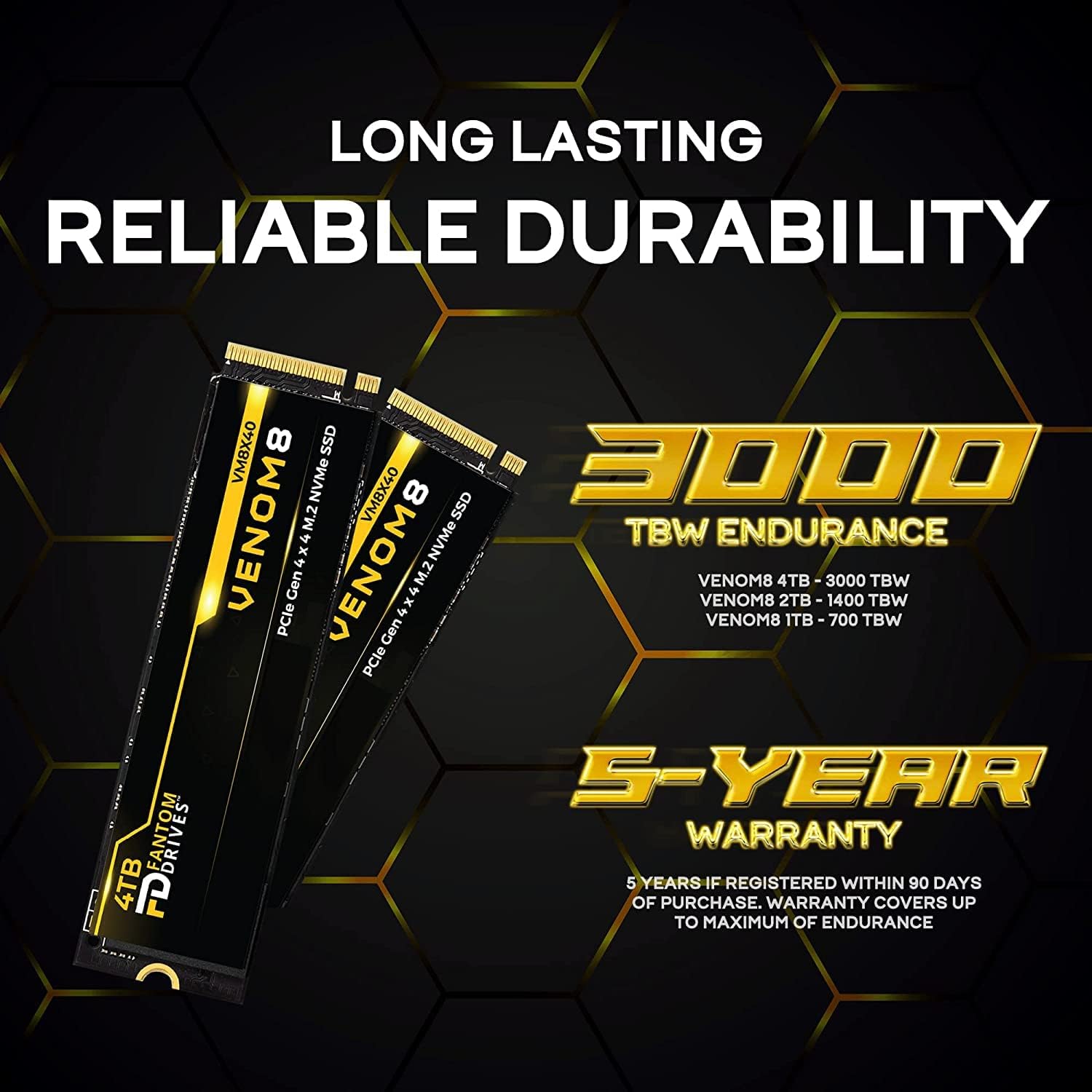 Fantom Drives VENOM8 4TB NVMe Gen 4 M.2 SSD for PlayStation 5 (PS5) Gaming PC & Laptop, Graphics, Video Editing - 3D NAND TLC DDR4 DRAM Cache Internal SSD - Up to 7400MB/s - w/Heatsink (VM8X40-PS5)