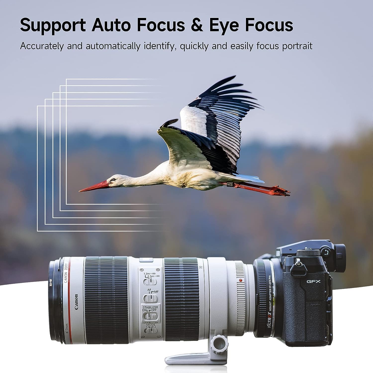 - 【Compatible】: VILTROX EF-GFX Pro electronic lens converter could perfectly transfer Canon EF and EF-S mount lens to Fujifilm(Fuji) G-mount cameras GFX 100/100S/50S/50SII/50R, Enhanced Fuji GFX camera expandability.