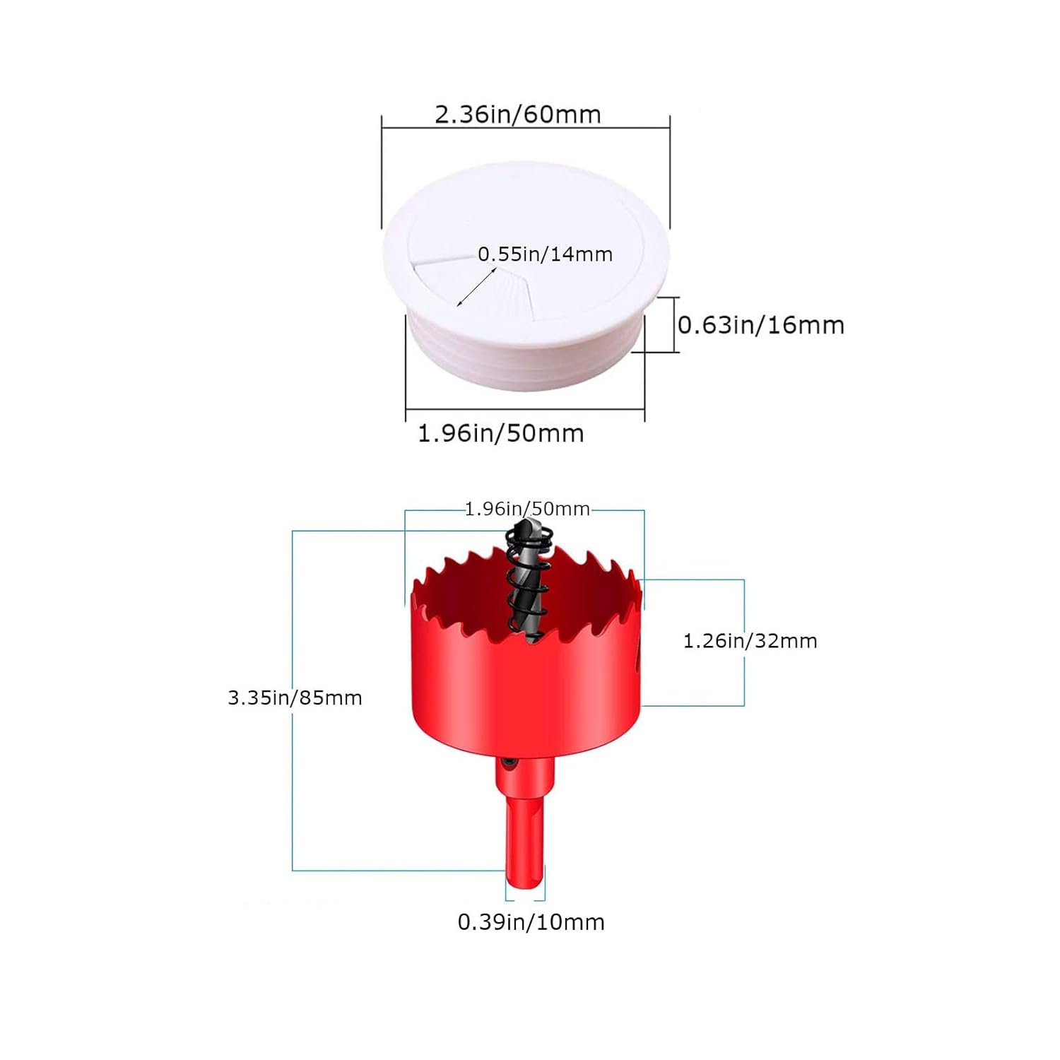 - 【Easy to Use】the desk grommet adopt detachable cover design which ensure convenient to use or disassemble. When drill a wood boards or such thing with a thickness of more than 10 mm, please remove the spring!