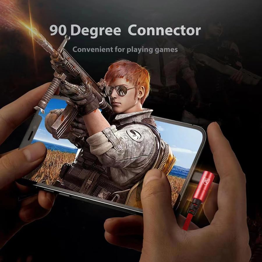 - 90 Degree iPhone Charger Cable: The 90 degree lightning cable 6ft comes with L shapes connections (Lightning end), which can fit the device sideways. 90 degree extra long 6 FT iPhone charger cord is more convenient for playing games, watching video when you while charging.