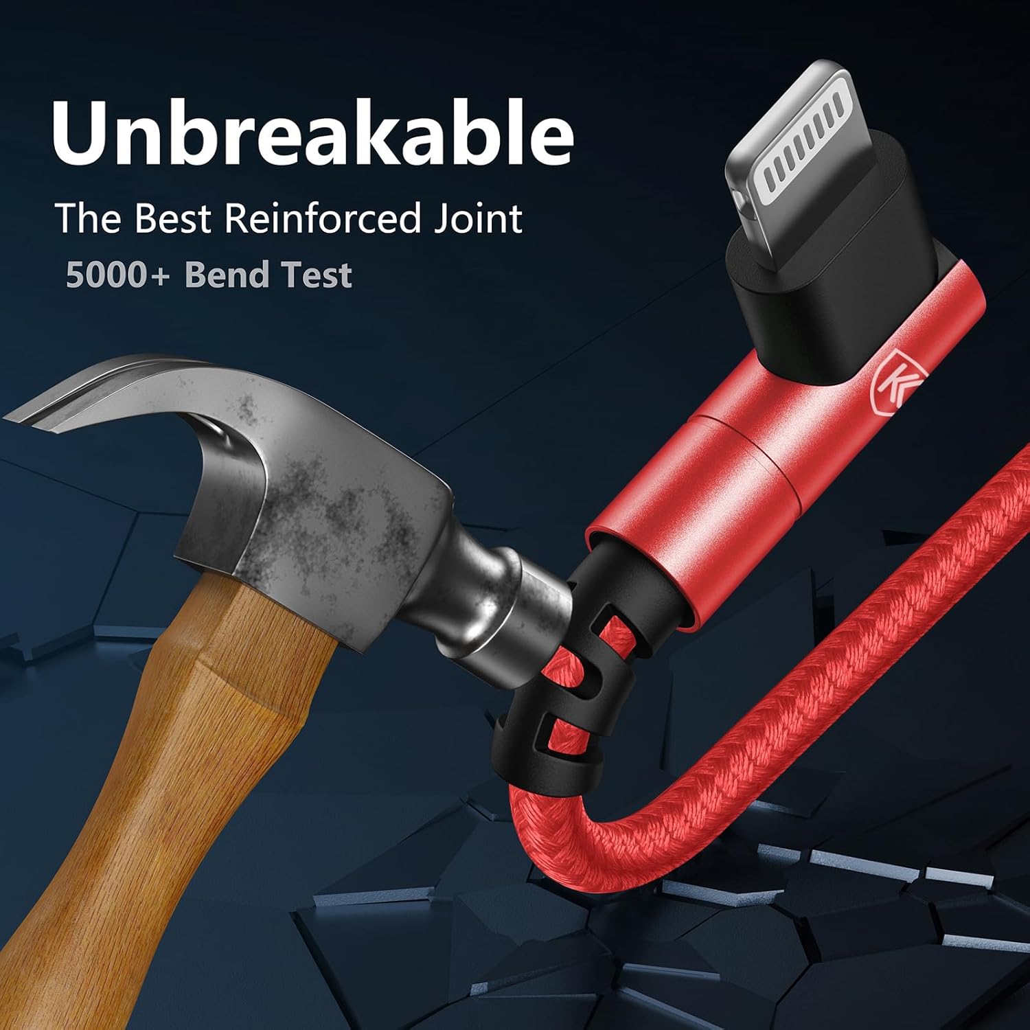 - Durable and Flexible: iPhone charging cable designed with premium materials, comes with nylon braided surface, tangle-free. It has been tested with 10,000 times bend and strong bearing capacity. 90 degree aluminium alloy connectors resist heat and corrosion, reduced the fraying and wearing of the cable joints, prolonging its life span.