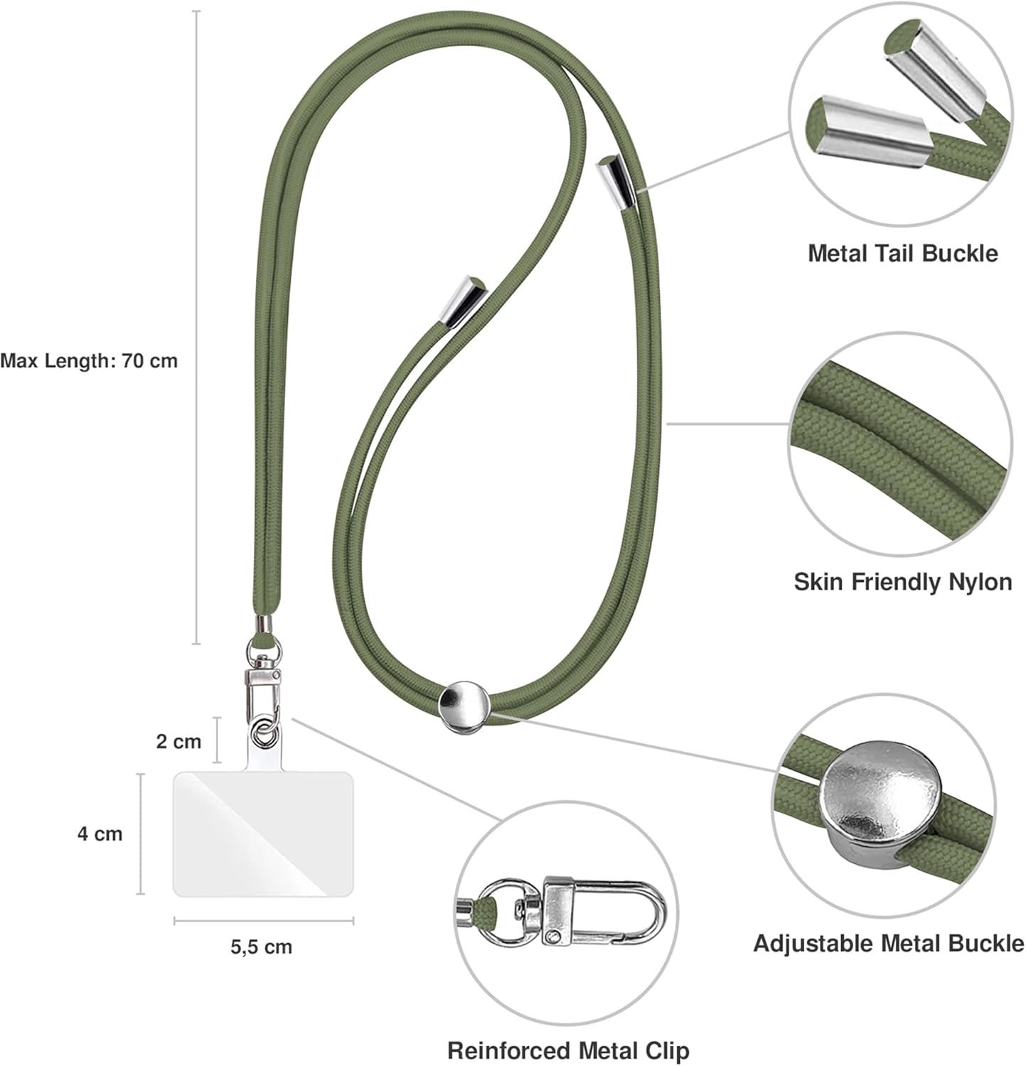 Cell Phone Lanyard [Army Green] - Comfortable Universal Smartphone Lanyard - Easy to Use Neck Phone Holder [Clear Patch] - Adjustable Length Phone Strap Crossbody - Fits All Mobile Phones