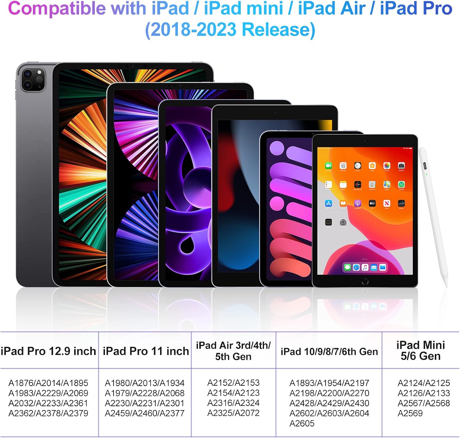 - Universal Compatibility: Compatible for iPad 2018 and later versions, including for iPad 10th/9th/8th/7th/6th Generation, for iPad Air 3rd/4th/5th Gen, for iPad mini 5th/6th Gen, for iPad Pro 2018-2022(12.9"/11"). Not Compatible With iPad Pro 12.9" (1st/2nd Gen), Not Compatible With iPad Pro 9.7"/10.5" and for iPhone
