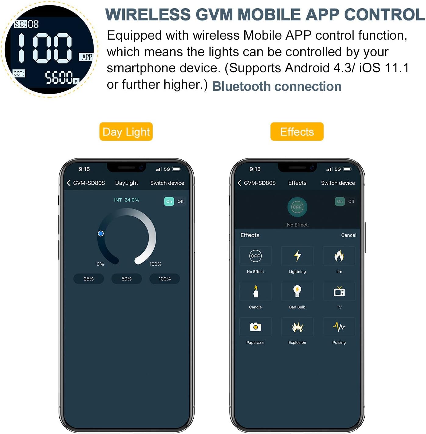 - PRECISE LIGHTING ADJUSTMENT AND APP CONTROL: GVM led lights support step-less adjustment light brightness from 0% to 100% and observe the data through the LED screen. Or you can download GVM App and connect “BT_LED” to use the light, adjust the lighting parameters on your phone via Bluetooth. and can be controlled in groups with GVM brand devices that support mesh networking.