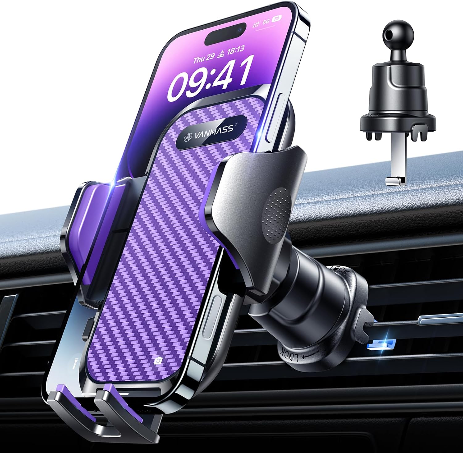 VANMASS Car Phone Holder Mount 2025 Upgraded [Patent Steel-Hook] Car Vent Phone Mount Clip Military-Grade Shockproof Cell Phone Car Mount Handsfree Truck Stand Vent Cradle for iPhone 16 Android,Purple