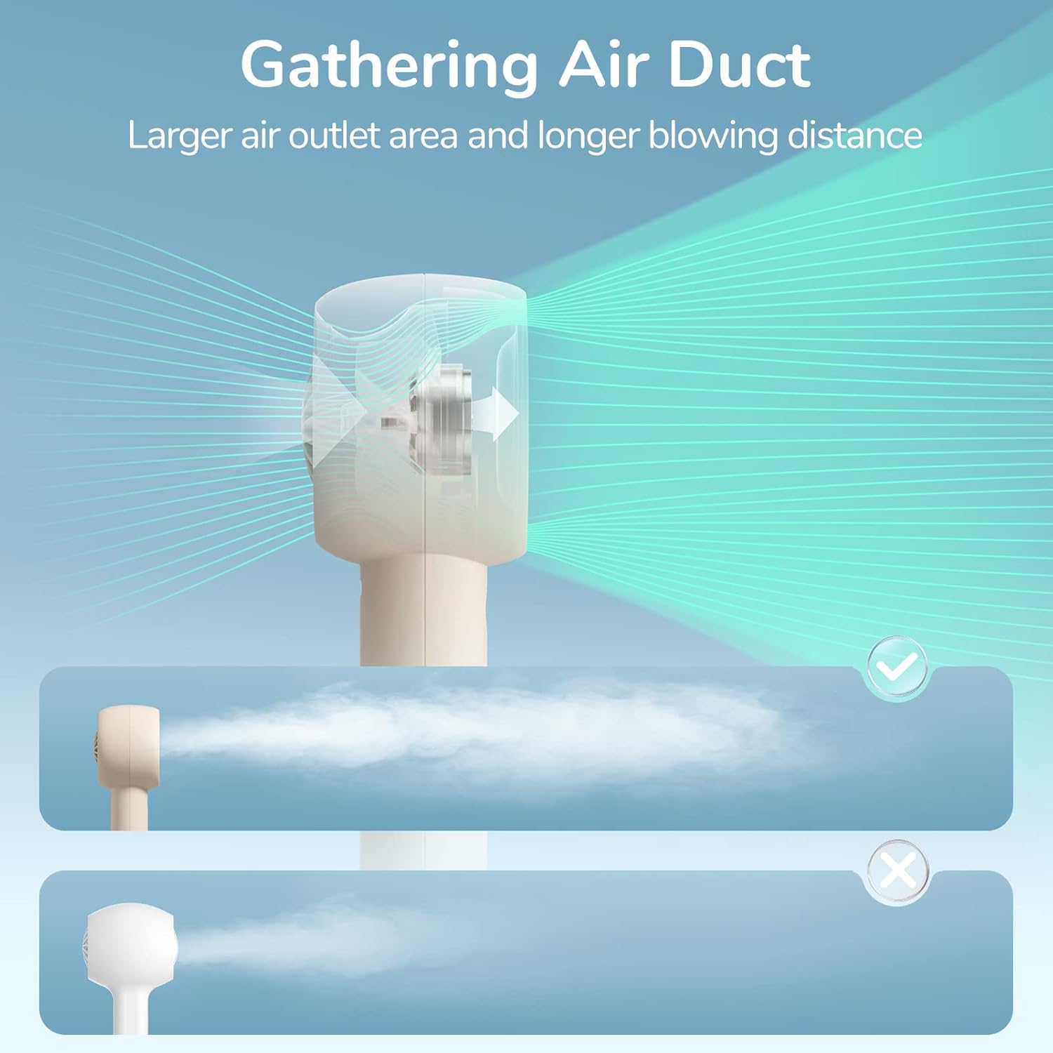 - Upgraded Turbo Engine: Aircraft engine turbine technology to provide super power. The air volume of the handheld fan is 30% higher than that of ordinary fans. The speed is as high as 9000r/min. The 7 wedge-shaped fan blades absorb wind force, and the wind force is increased by 3 times through the air duct
