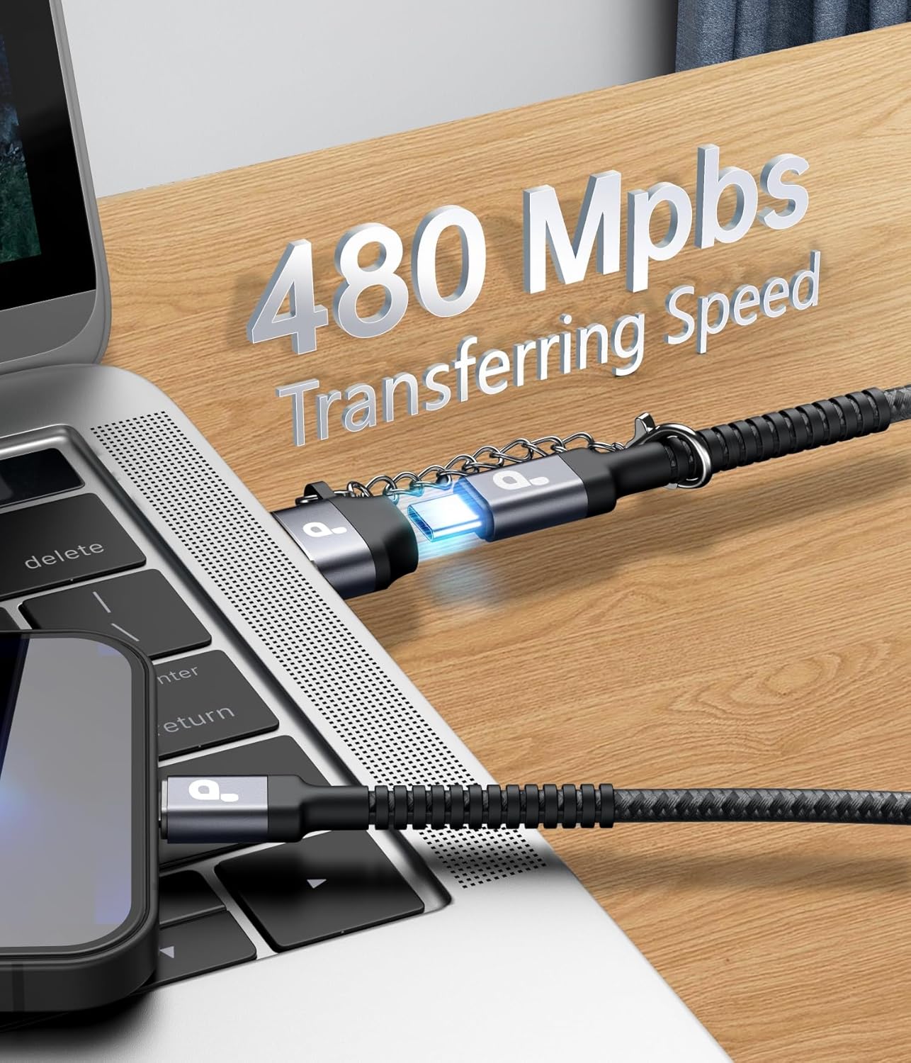 - 【Fast Charge and Data Transfer Charging Cord】 iPhone usb c to lightning cables can easily quickly charge your iPhone 14/13/12 or iPad from 0% to 50% in 30 minutes with PD Charger (including Apple 18 W, 20 W, 25 W, 29 W, 30 W, 61 W, or 87 W USB-C Power Adapter). Not only realize 27 W PD fast charger, but also the data transfer speed reaches to 480 Mbps.