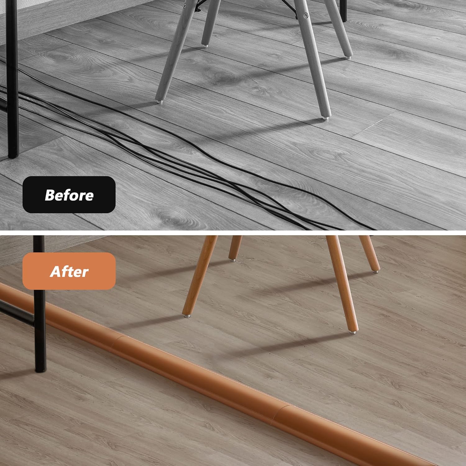 Cord Hider Floor 68in (4 x L17in), Large Capacity Floor Cord Cover, Hard PVC Wire Cover, Cable Management Floor, Brown, Cord Cavity - 1.1"(W) x 0.4"(H)