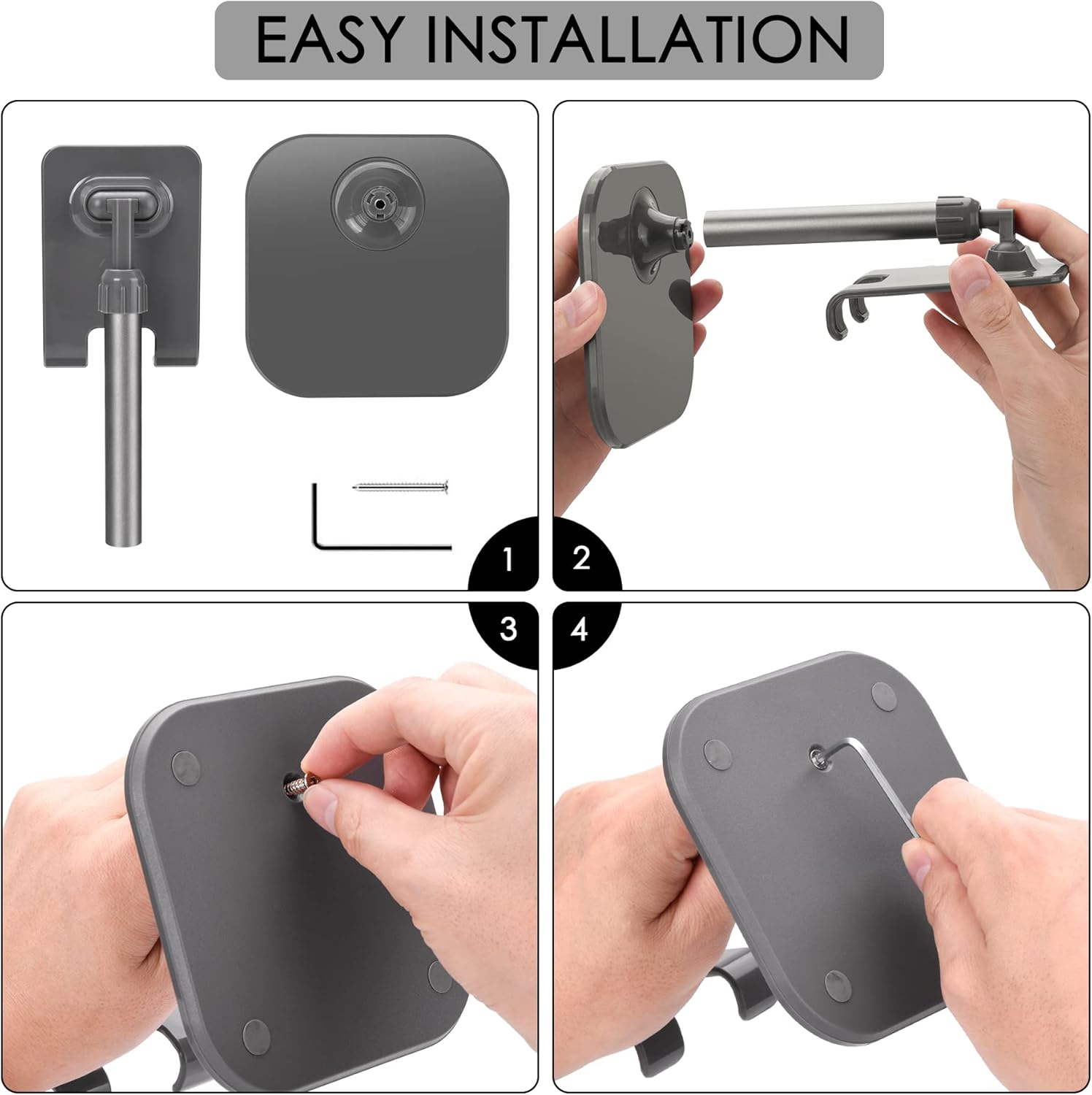 - Easy installation: Including Phone stand, screws and installation tools, Install the screws at the bottom to complete the installation